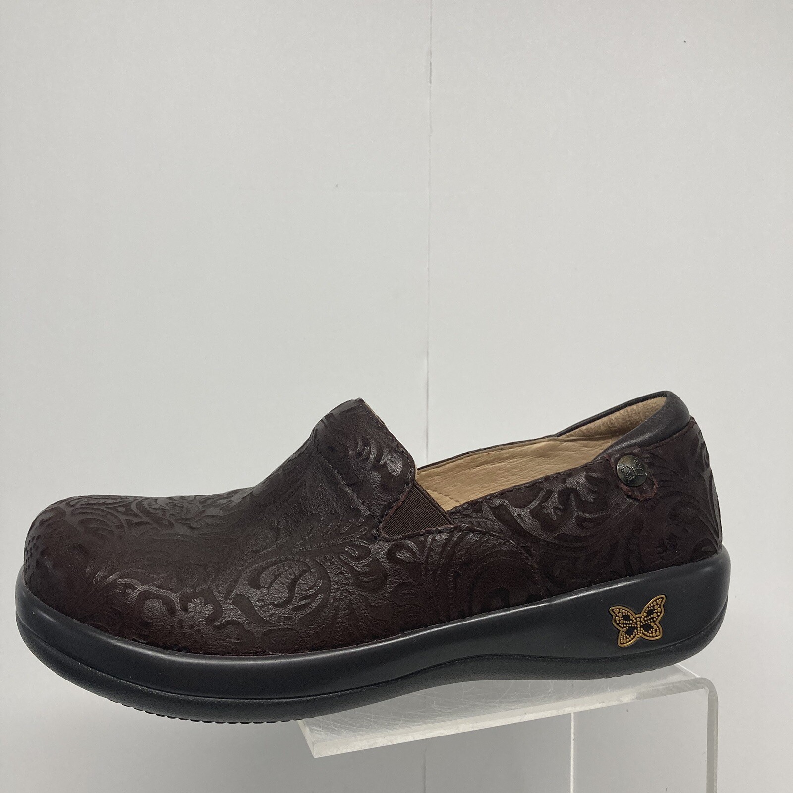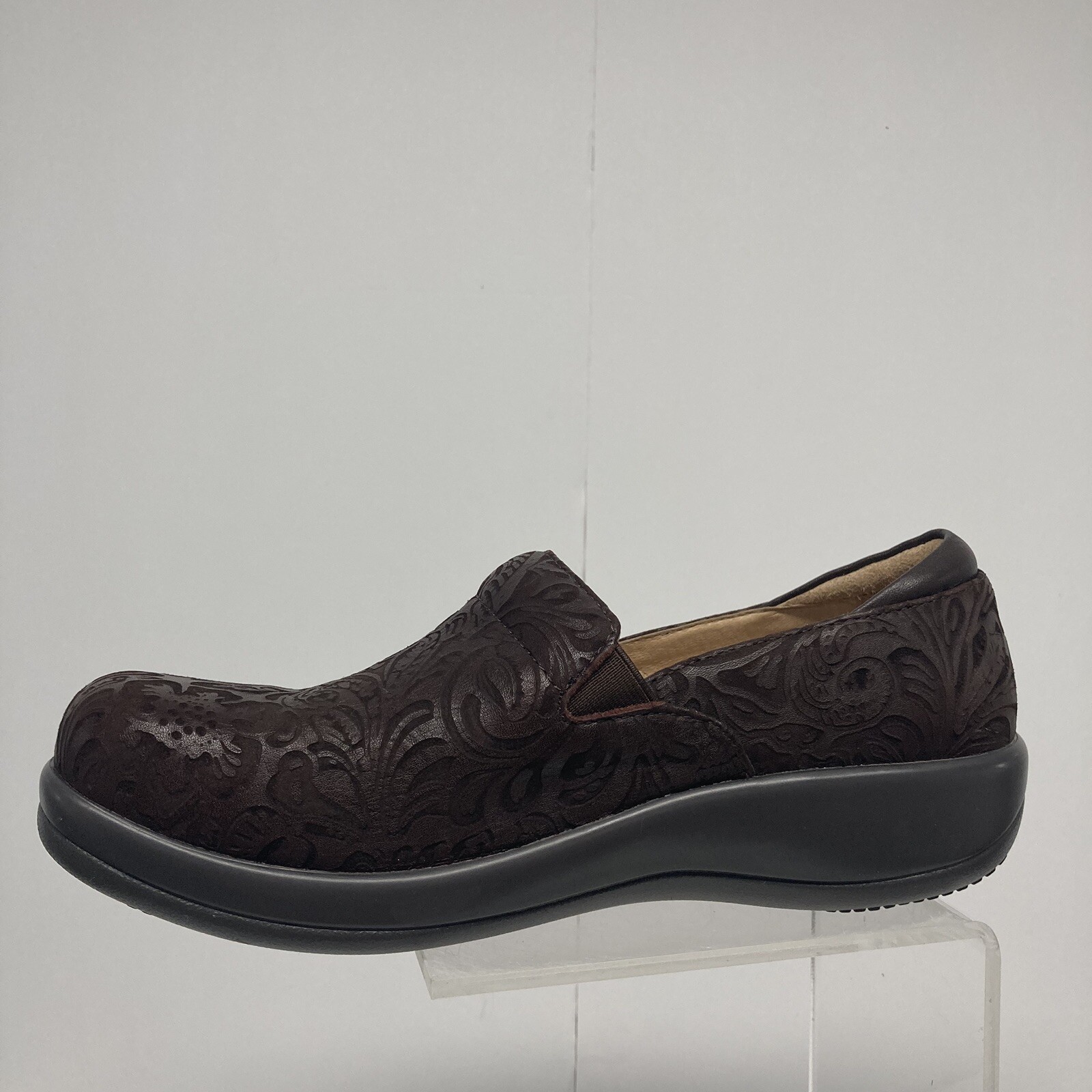 Alegria Keli Professional Chocolate Embossed Paisley Leather Loafer Women Size 9