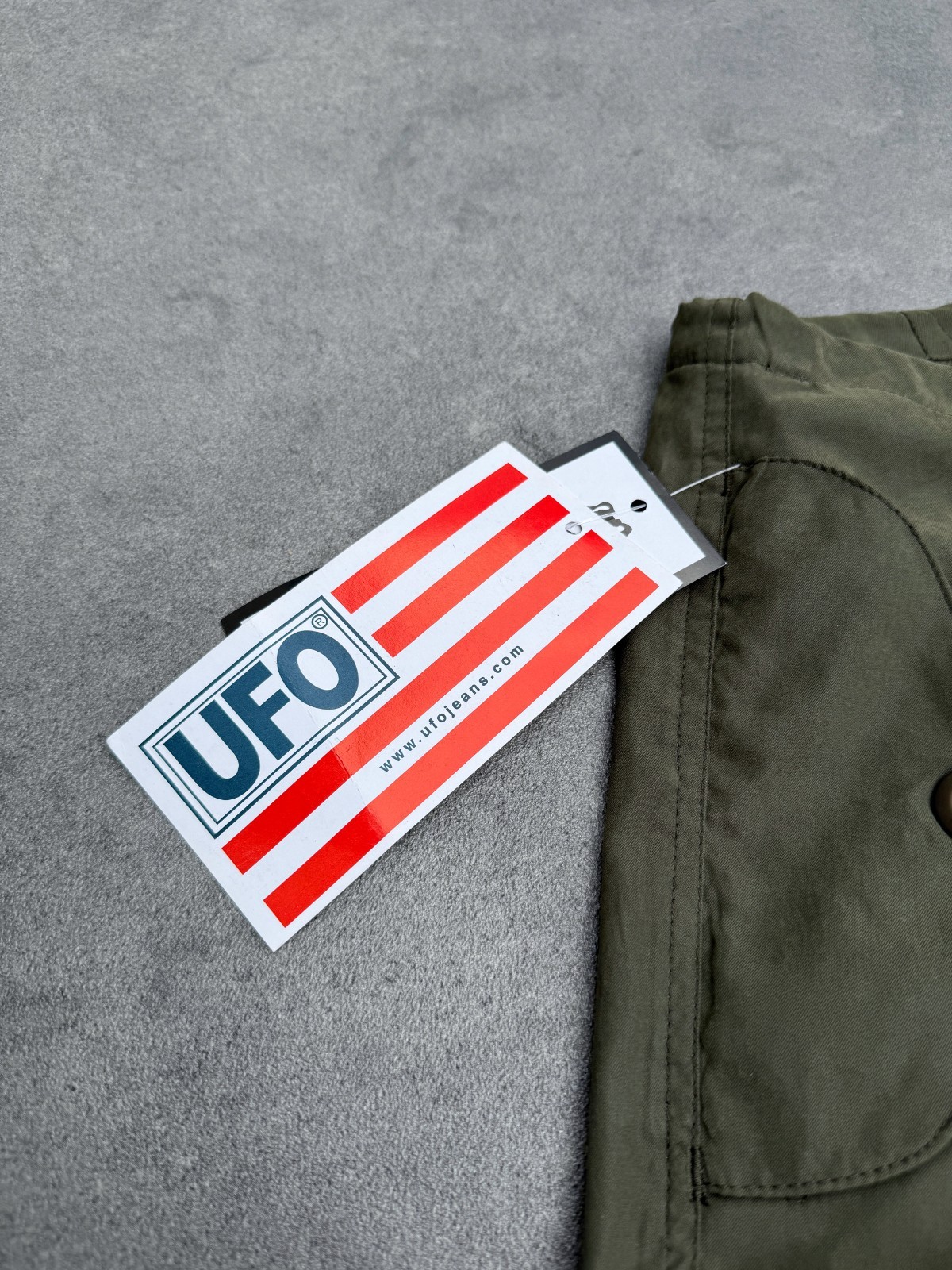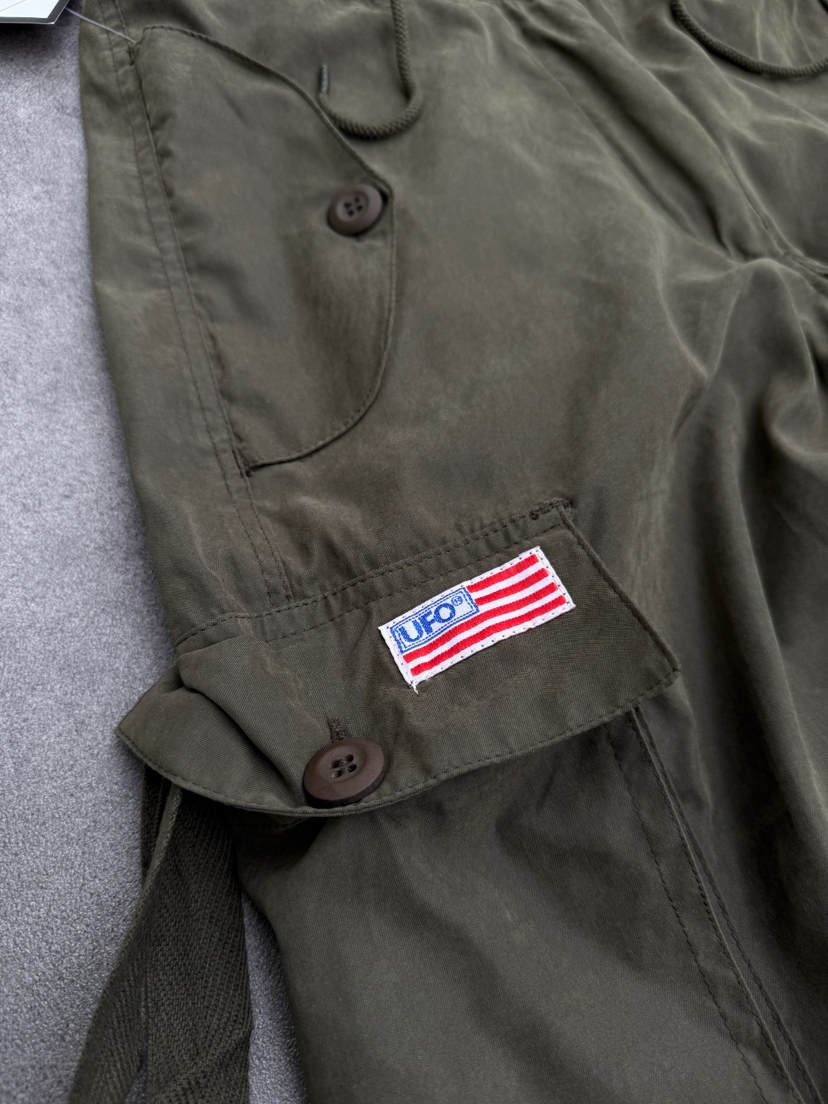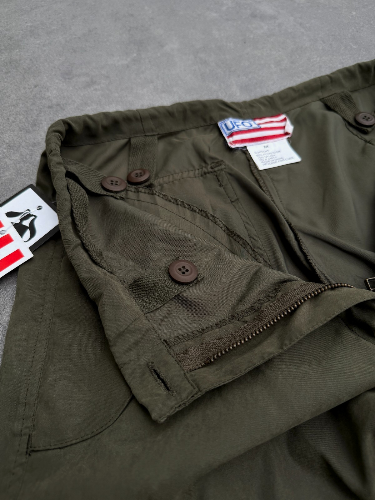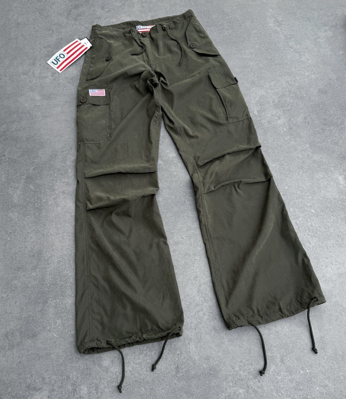 DEADSTOCK UFO 90s Y2K Vintage Parachute Cargo Pants Wide Flare Tech Rave Khaki S