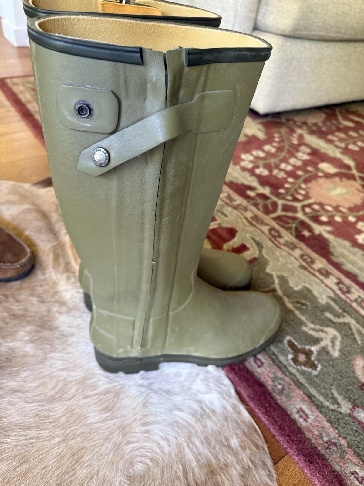 как выглядит LE CHAMEAU CHASSEUR LEATHER LINED MENS ICONIC GREEN WELLINGTON BOOT MADE FRANCE фото