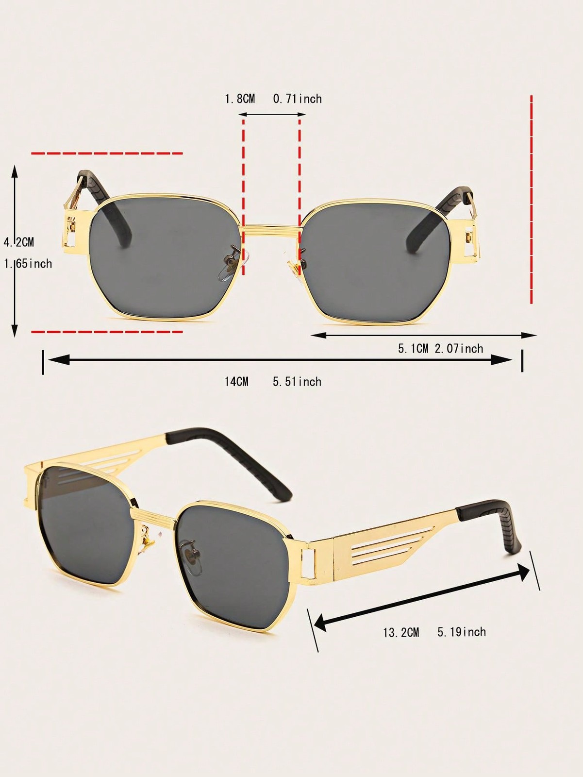 Unisex Retro Punk Square Frame Glasses Metal Hollow Design for Travel Beach