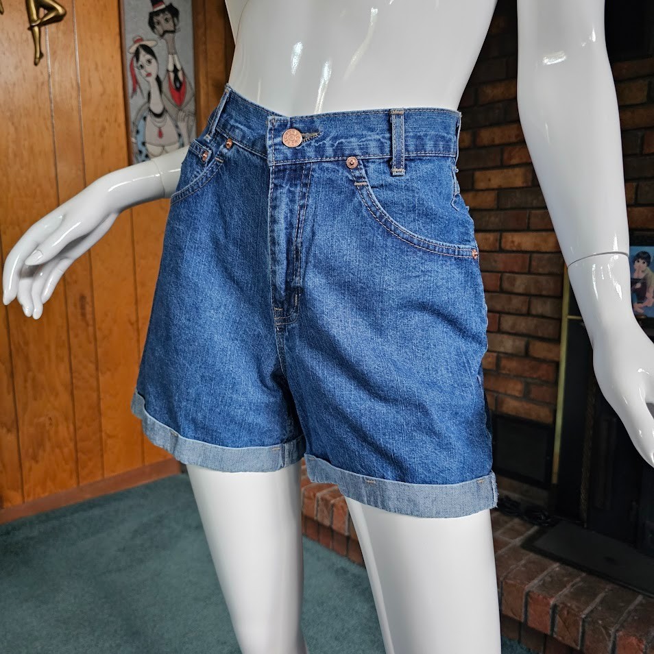как выглядит Vintage 90s Grunge Mall Rat Denim High Waist Mini Cuffed Chic Jean Shorts XS/S фото