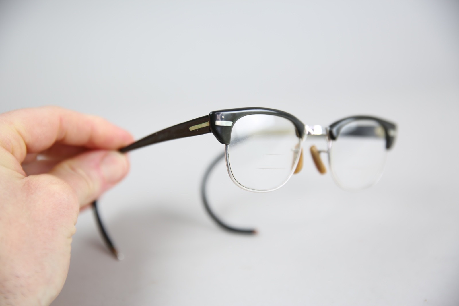 как выглядит Vintage Universal Optical Co Horn Rim Eyeglasses Frames 10KGF Brown 70s American фото