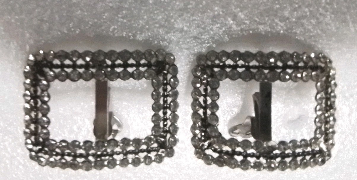 2 PCS Square Rhinestone Enamel Shoe Clips Vintage
