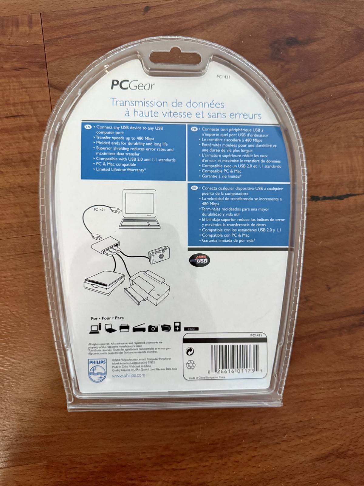 Philips USB 2.0 A/B Cable 6 ft High-Speed Data Transfer New/Sealed PC1421