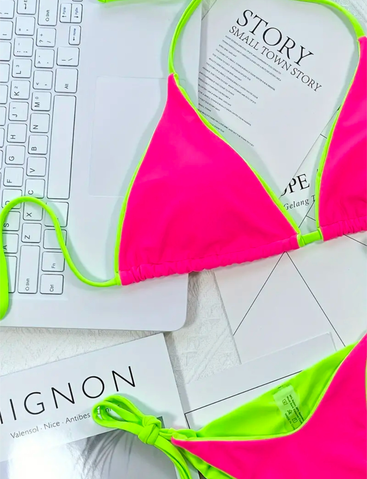как выглядит Bikini Pink And Green Size Large Adjustable Ties фото