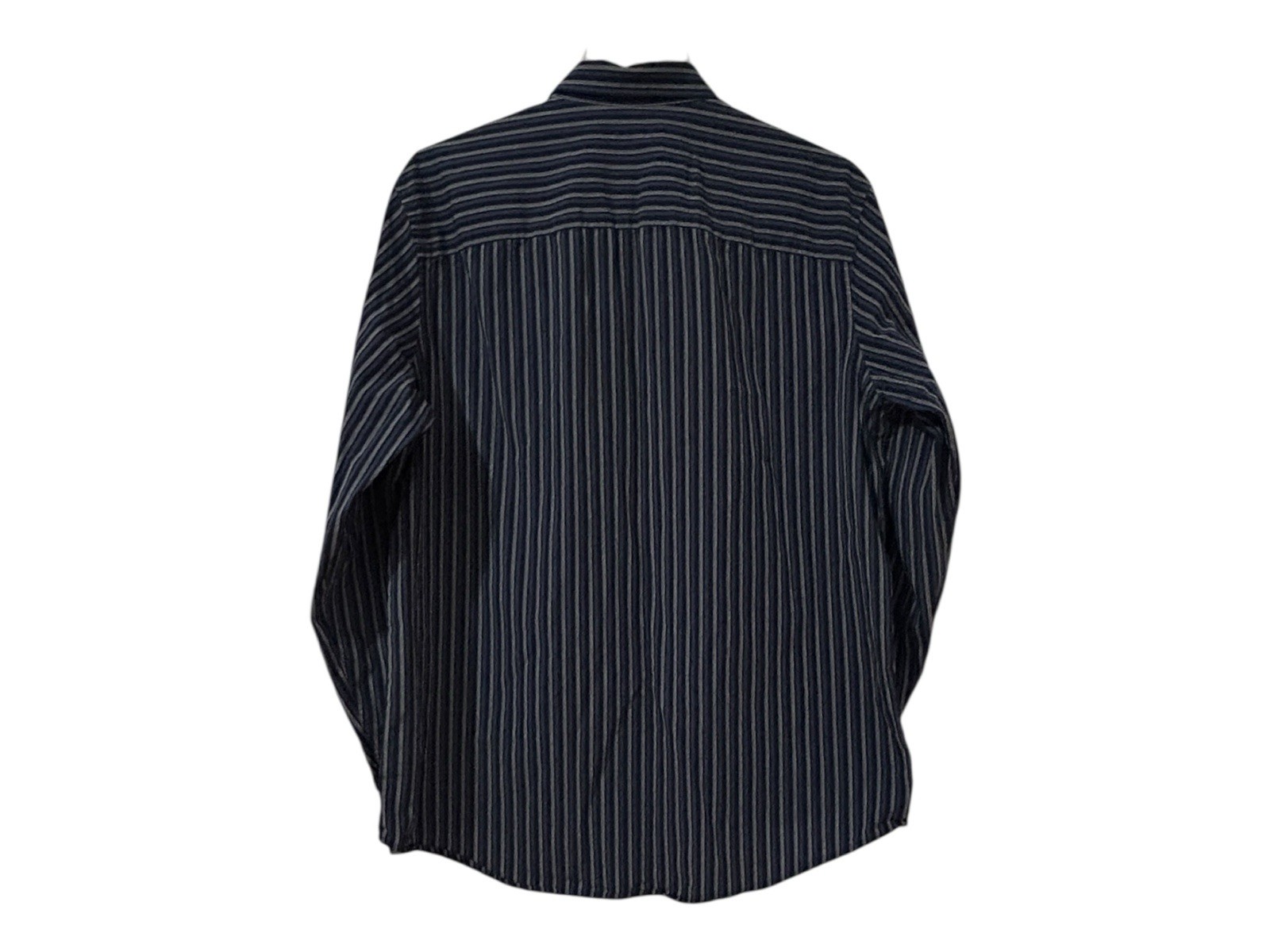 Michael Kors Mens Cotton Button Down Navy Blue Striped Dress Shirt Large