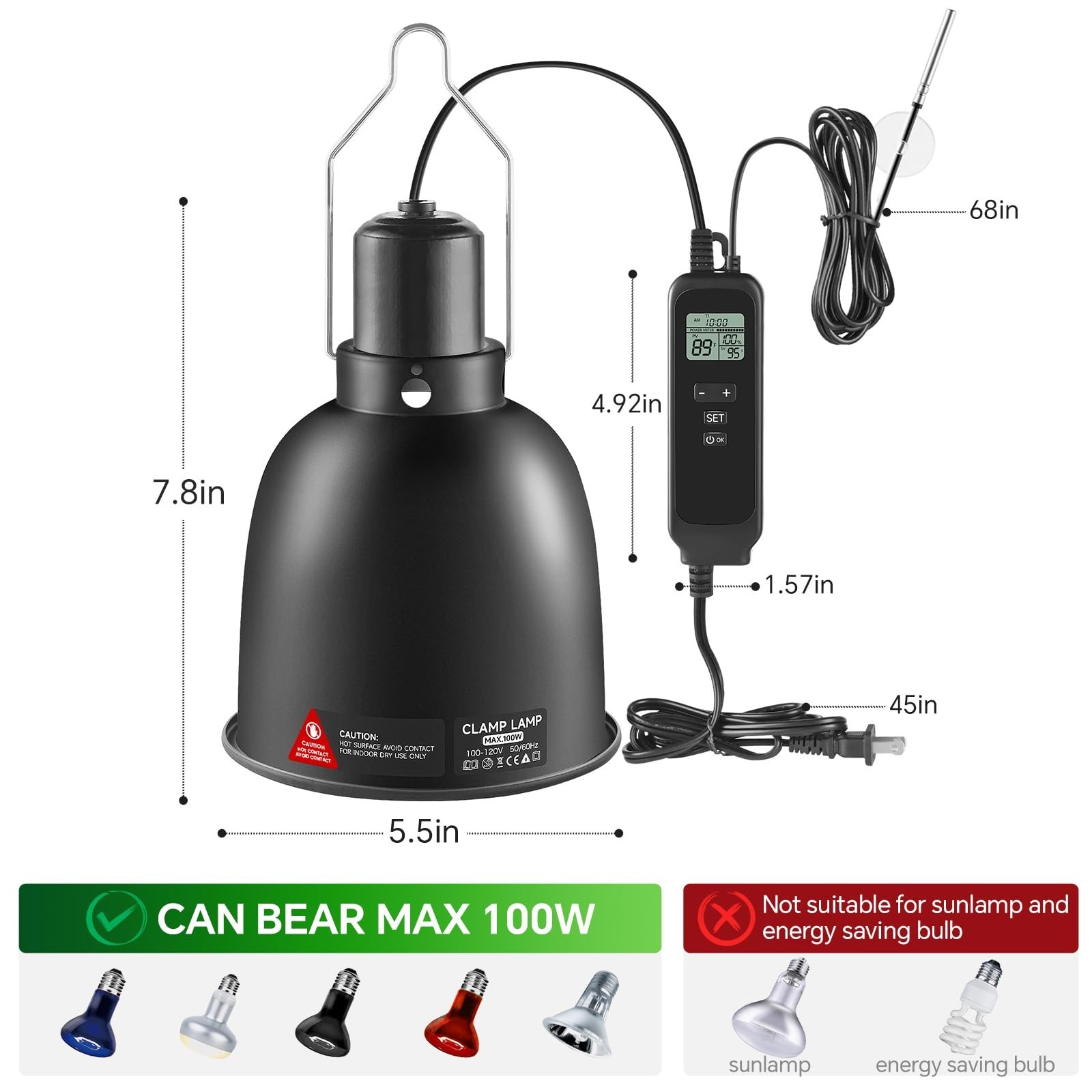 как выглядит 5.5 inch Reptile Heat Lamp Fixture with Thermostat and Timer,Reptil... Fast Ship фото