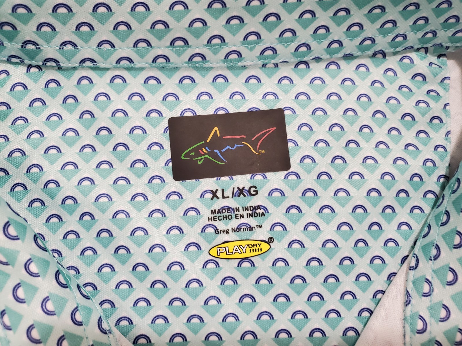 Greg Norman Performance Polo Golf Shirt Teal Blue Pattern, Wicking Mens XL NWOT