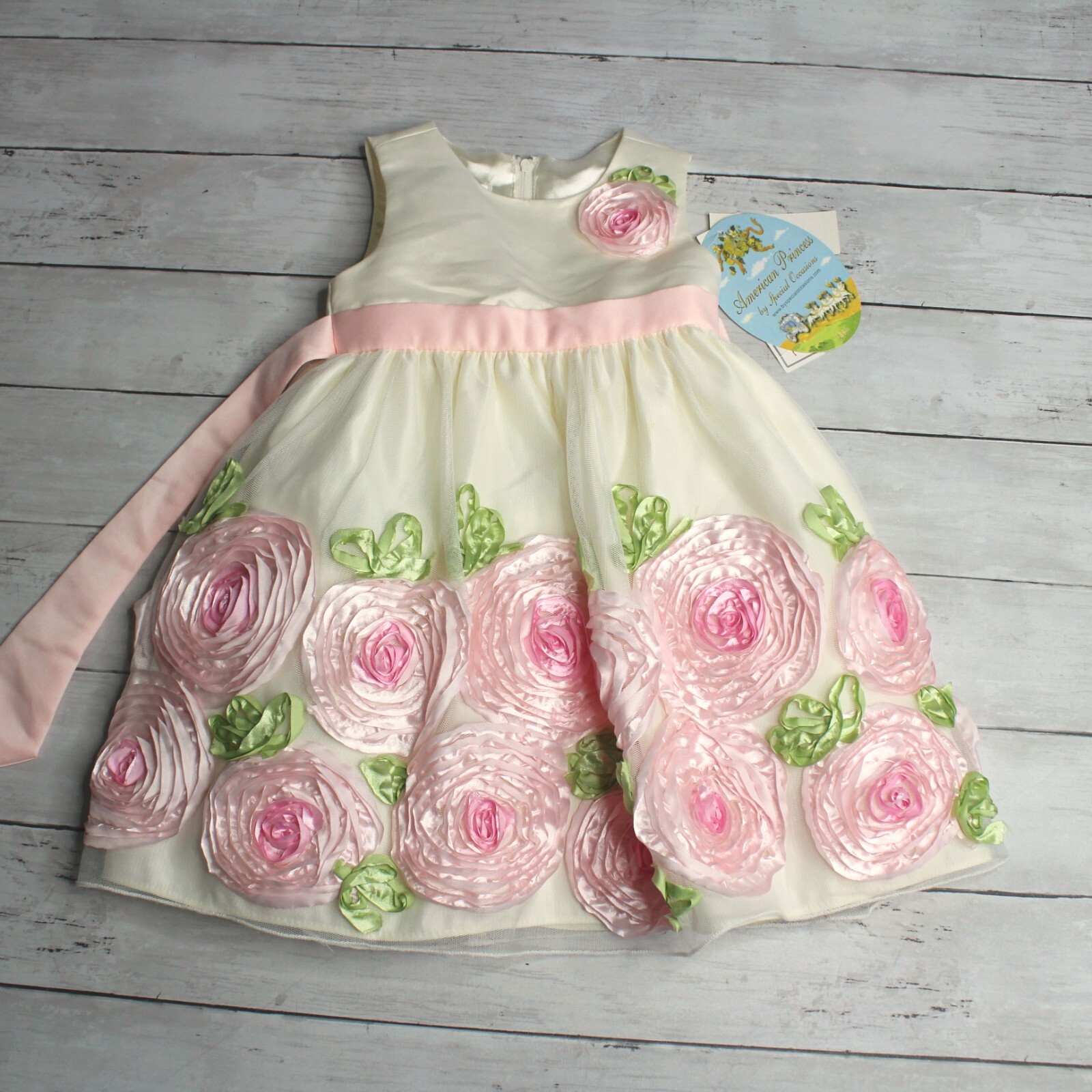 как выглядит American Princess Girls Party Dress Size 2T Ivory Pink Rosettes фото