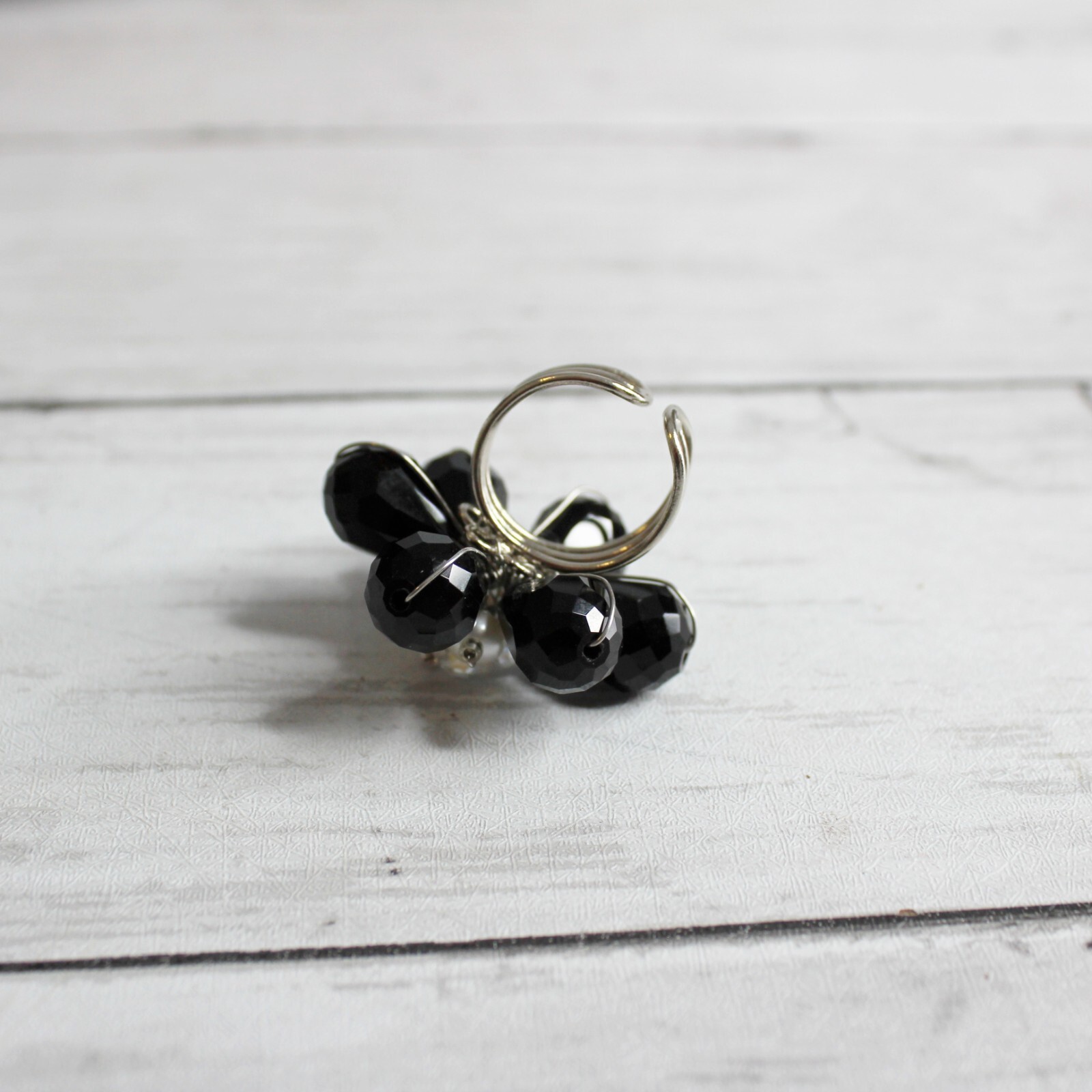 как выглядит Handcrafted Womens Black Flower Ring White Cultured Pearls Artisan Jewelry фото