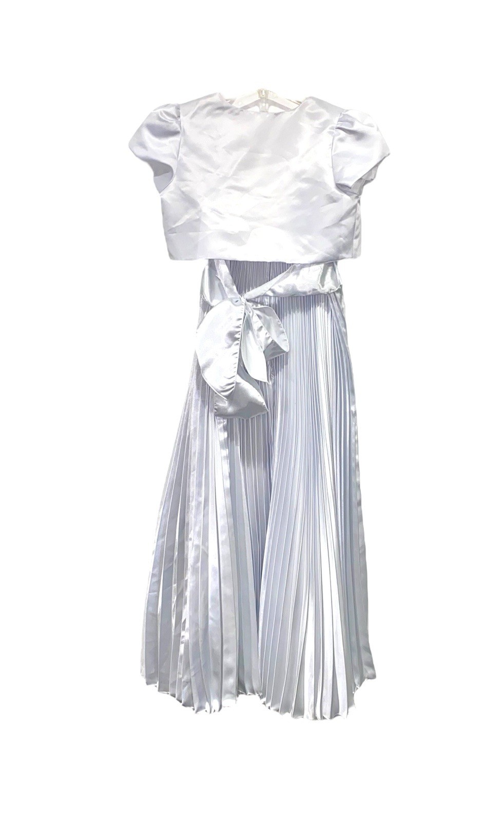 как выглядит White Satin Mesh Overlay Flower Girl Dress Wedding Holy Communion Size 14 фото