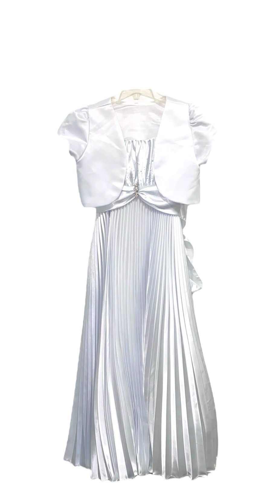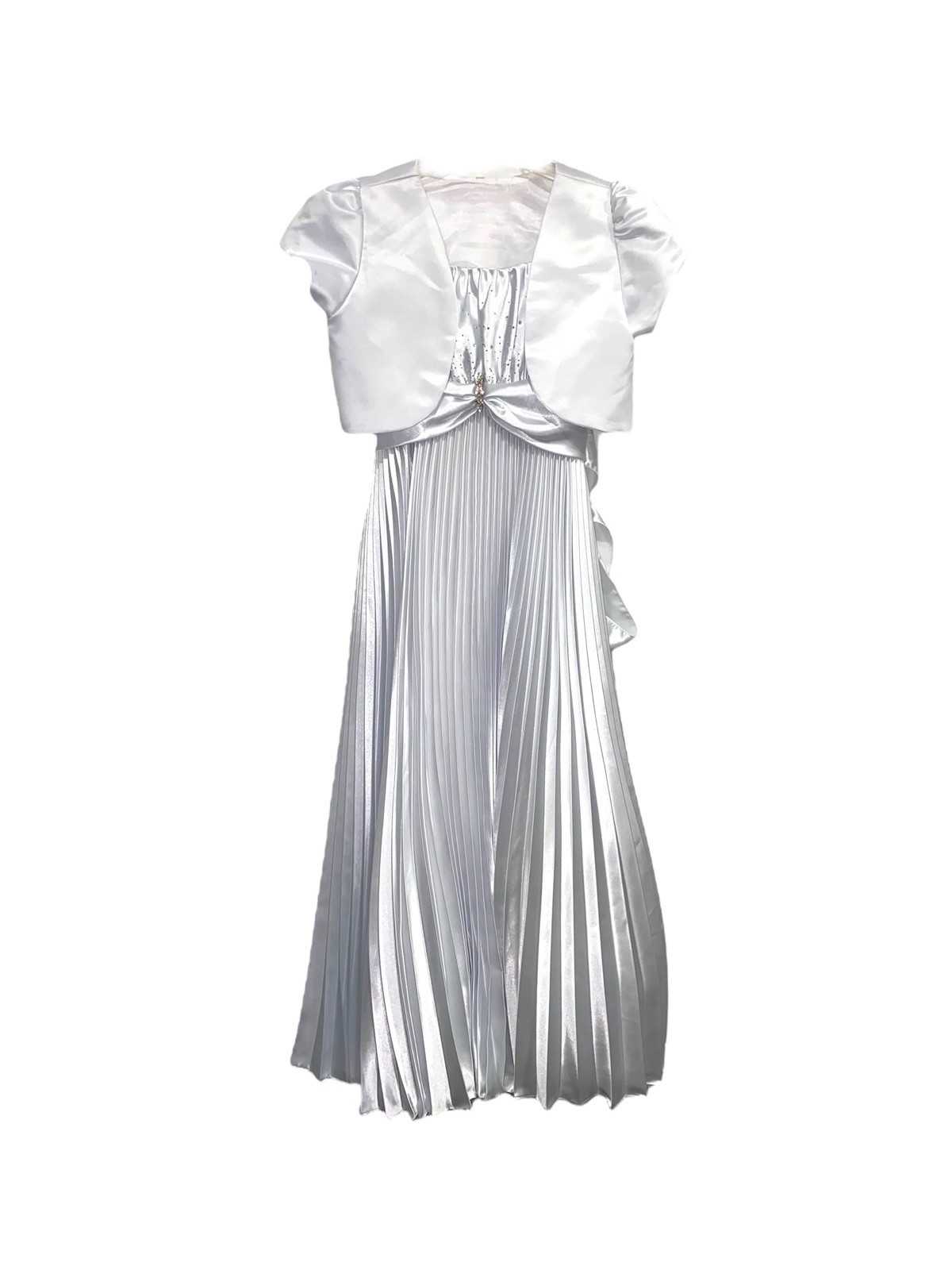 White Satin Mesh Overlay Flower Girl Dress Wedding Holy Communion Size 14