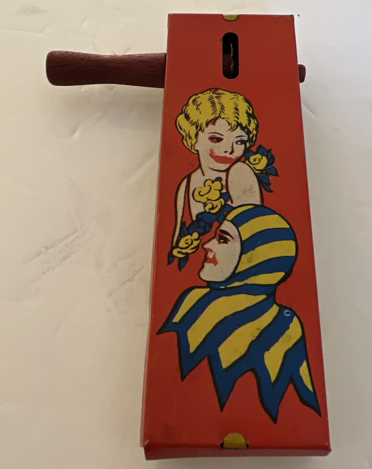 Kirchhof Life Of The Party Tin Litho Wood Handle Noisemaker Toy