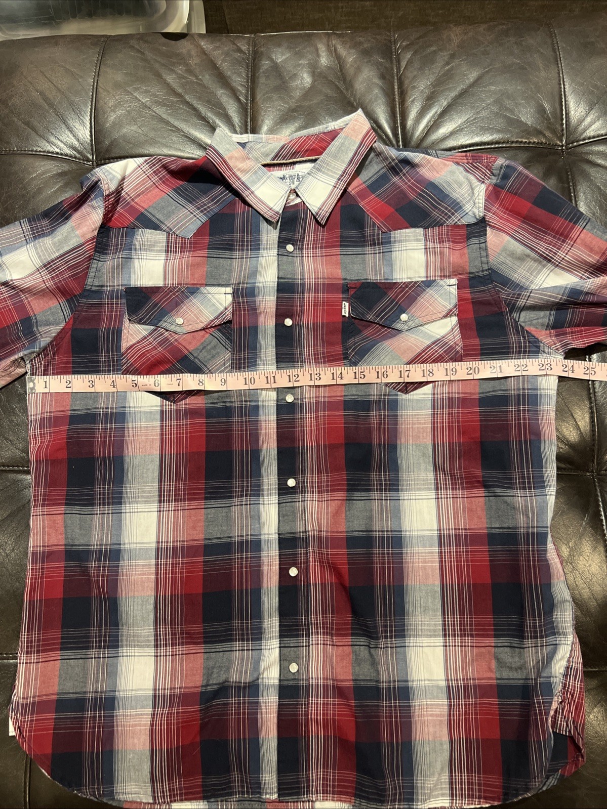 как выглядит Vintage Levis Long Sleeve Pearl Snap Western Plaid Shirt Mens XL фото