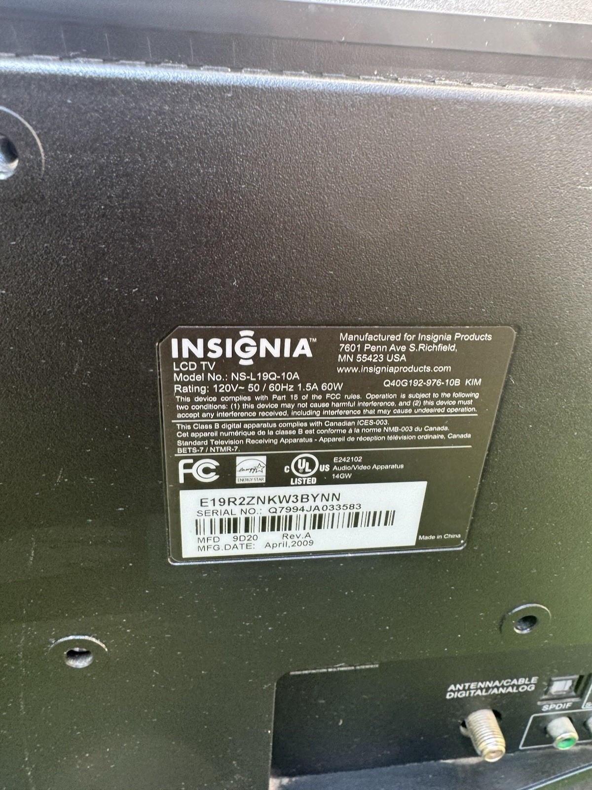 Insignia NS-L19Q-10A 19LCD LCD TV WITH REMOTE