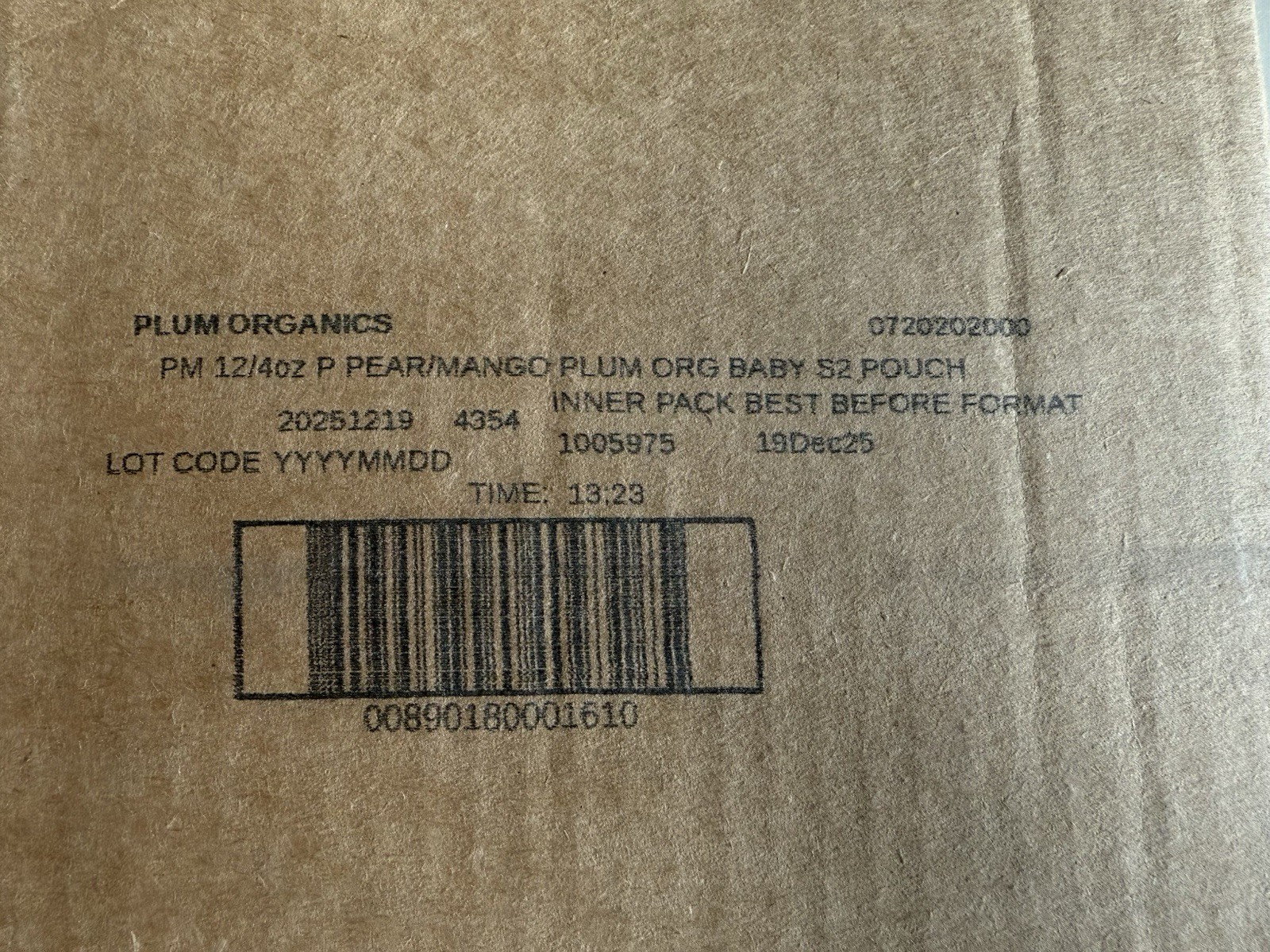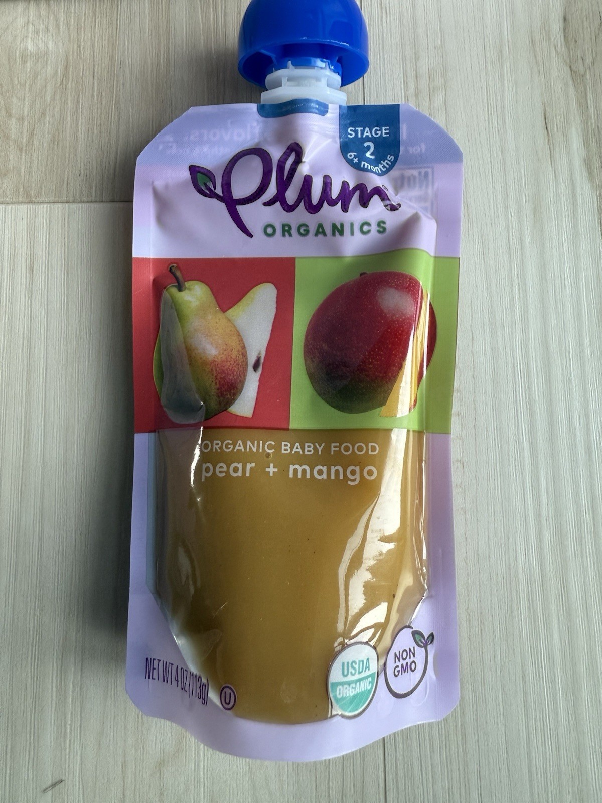 NEW 2-Pack Plum Organics Baby Food, Stage 2, Pear Mango 6 Pouches 12 Total