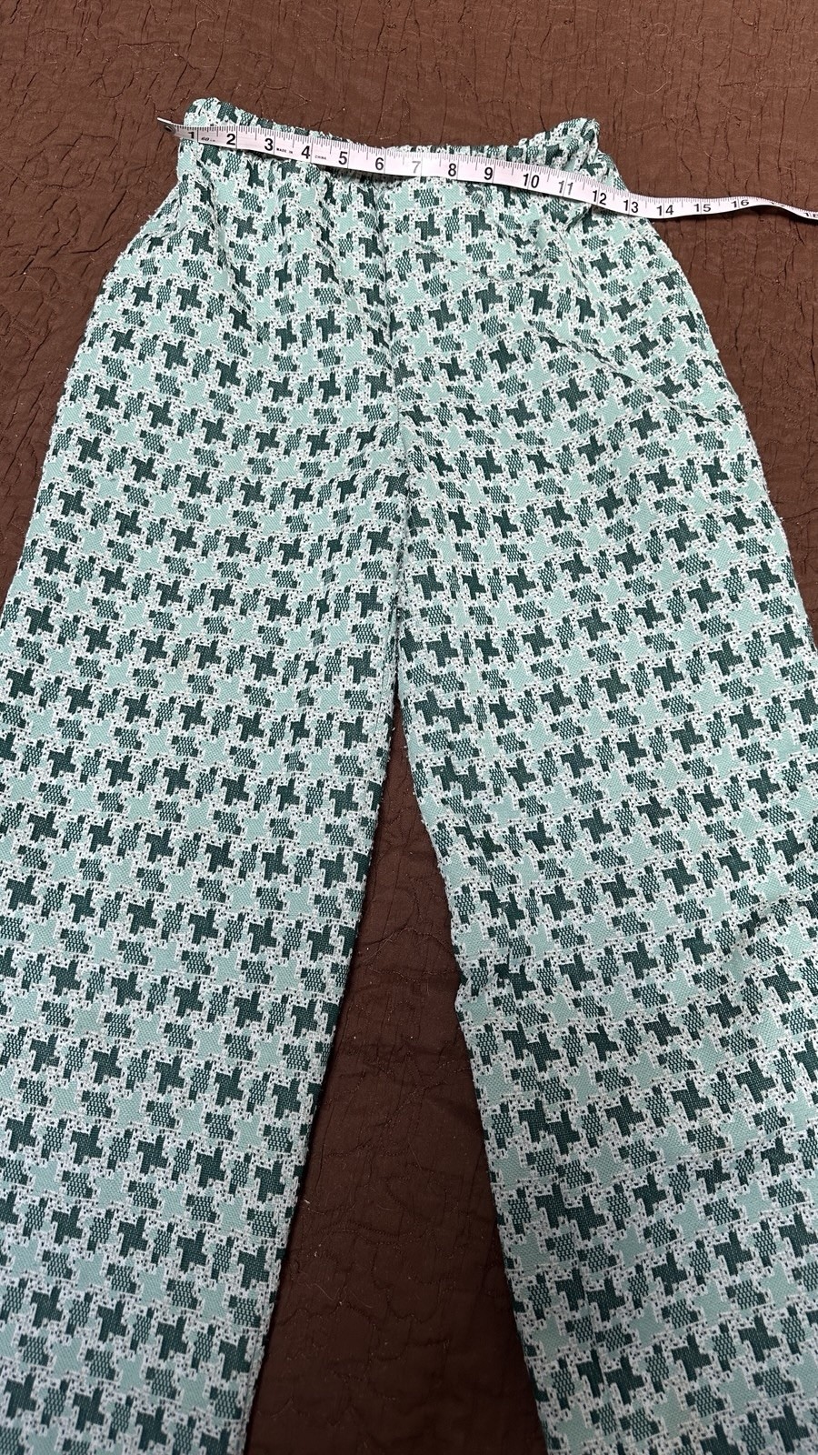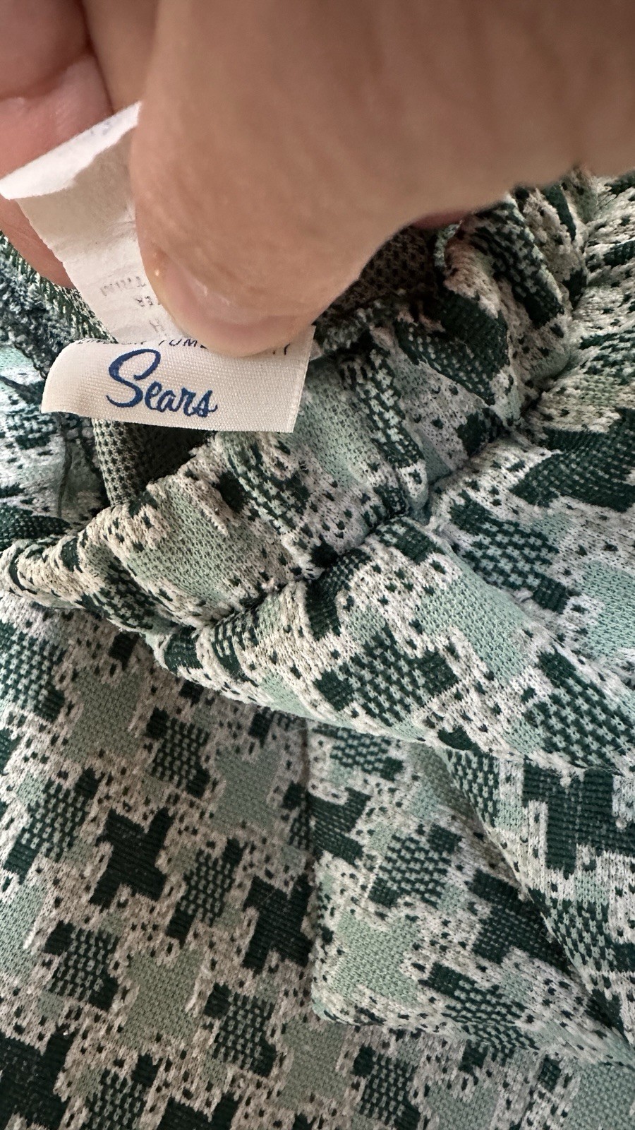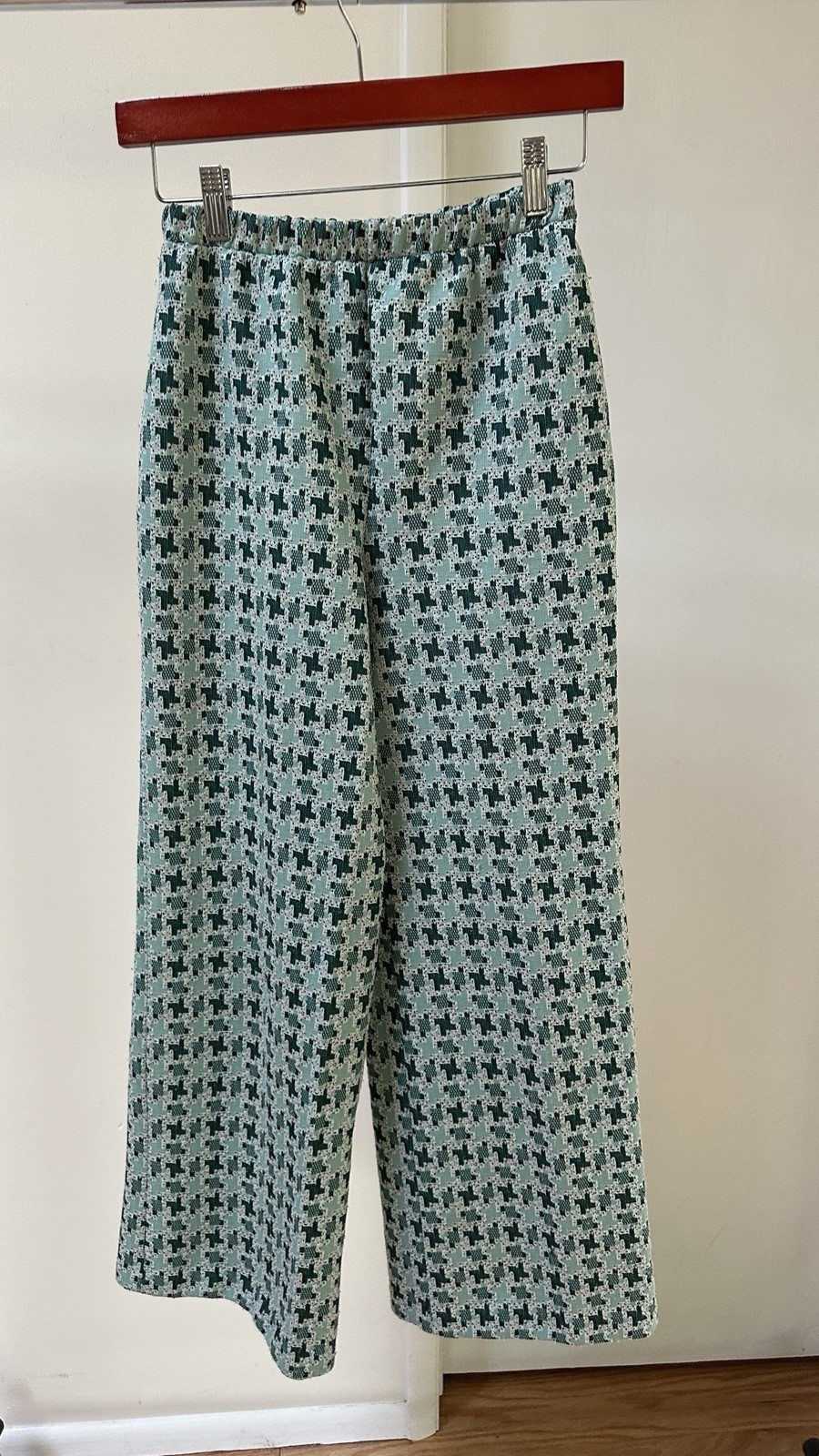 как выглядит Vintage 60s Polyester Double Knit Houndstooth Bell Bottoms Pants Green Small фото