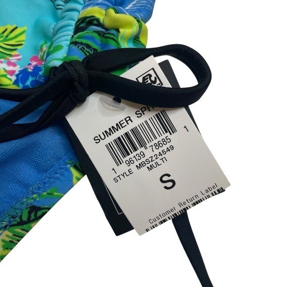 как выглядит Bar III Shirred Side Hipster Bottoms Summer Spritz Blue Tropical Small New фото