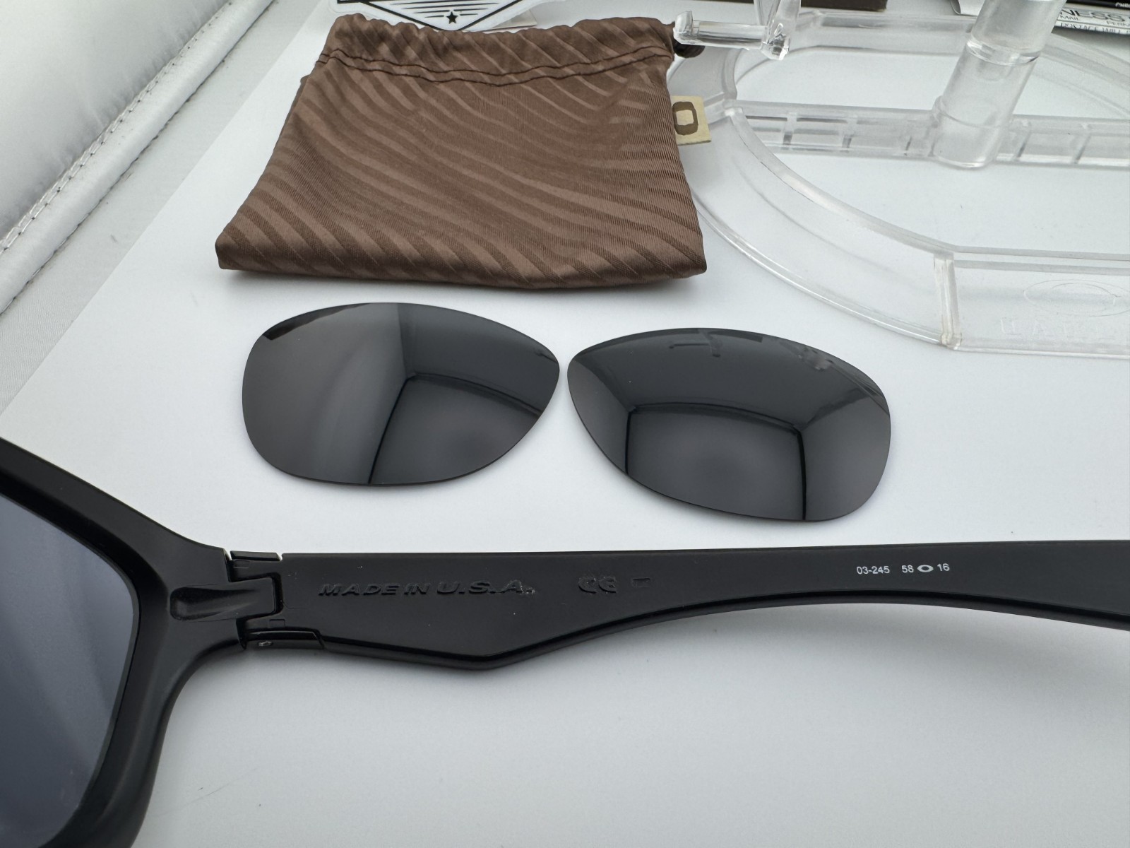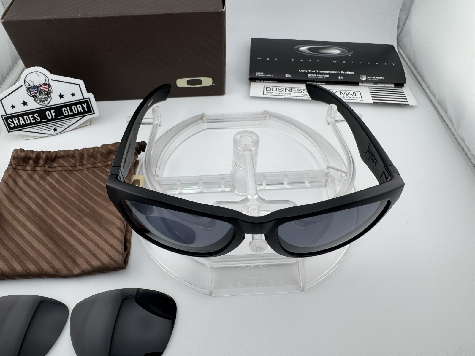 как выглядит OAKLEY JUPITER MATTE BLACK W/ GREY NEW BLACK POLARIZED SUNGLASSES 03-245 RARE фото
