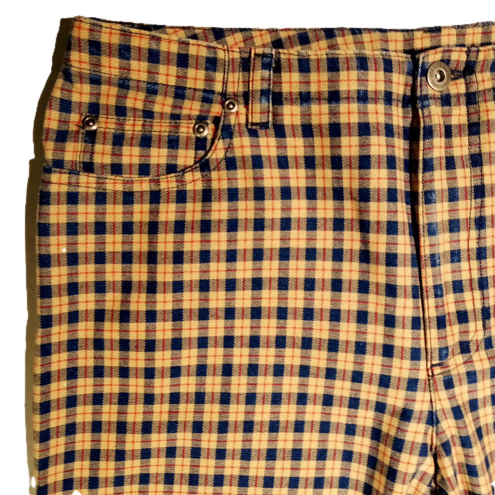 LIZ CLAIBORNE Pants sz 12P Tan/Navy Plaid Coastal Preppy 5 pocket style EUC