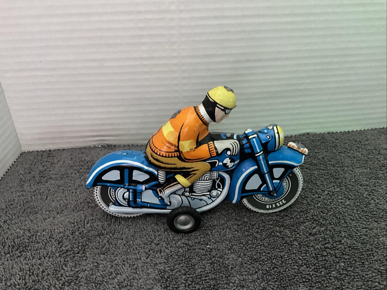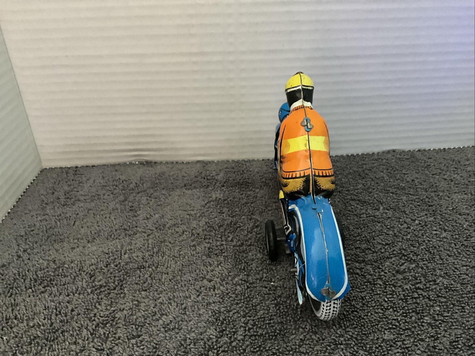 как выглядит Ballon Cordatic Blue 1960s Vintage Toy Friction Litho Tin Motorcycle Rider фото