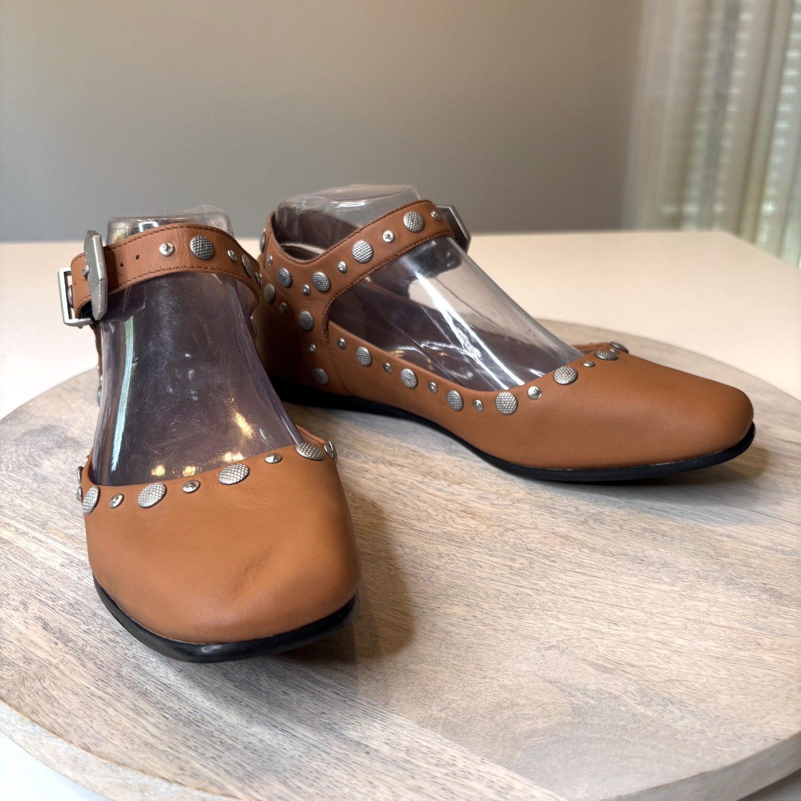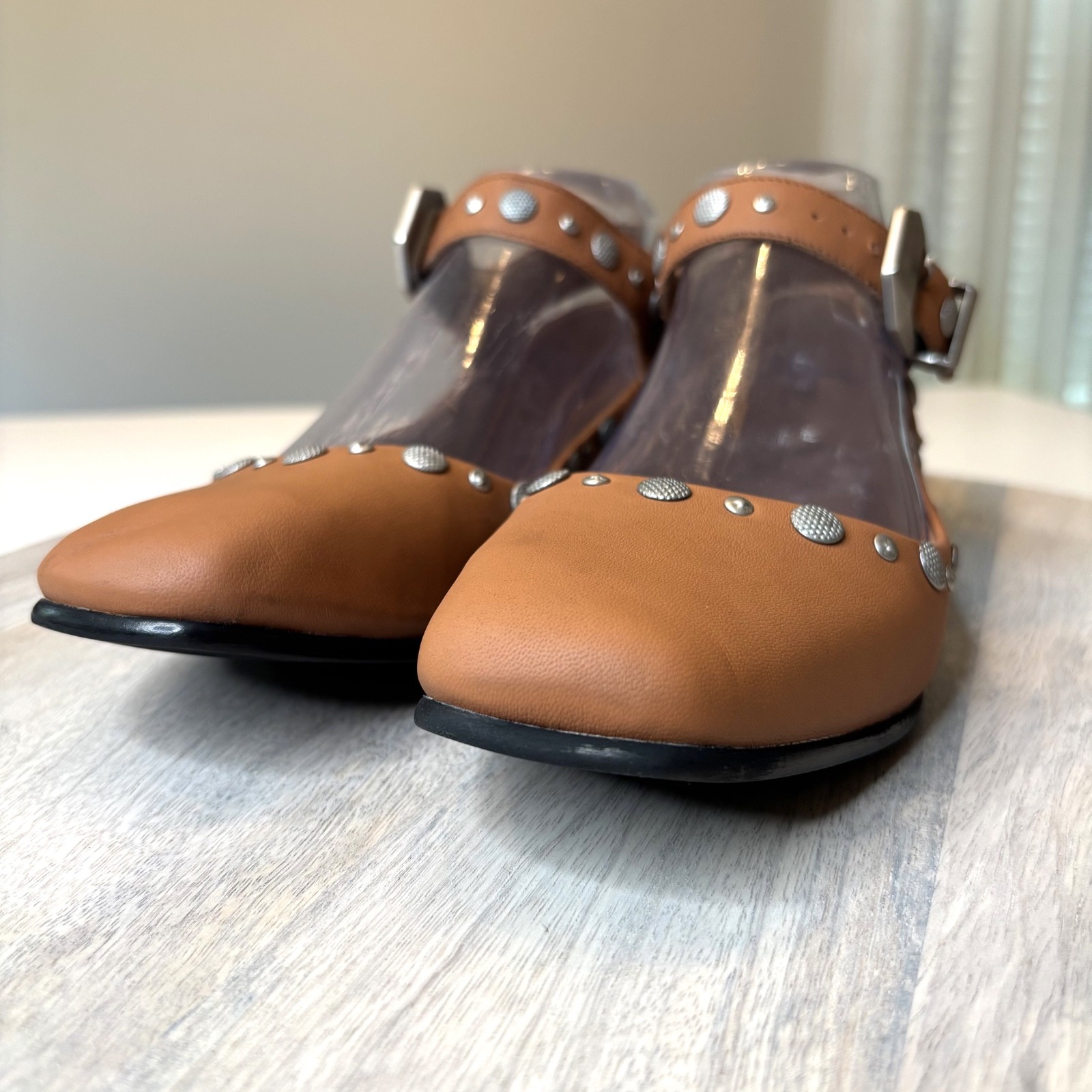 как выглядит NEW in Box Free People Mystic Mary Jane Flats Tan Studded Leather Shoes 6.5 NIB фото
