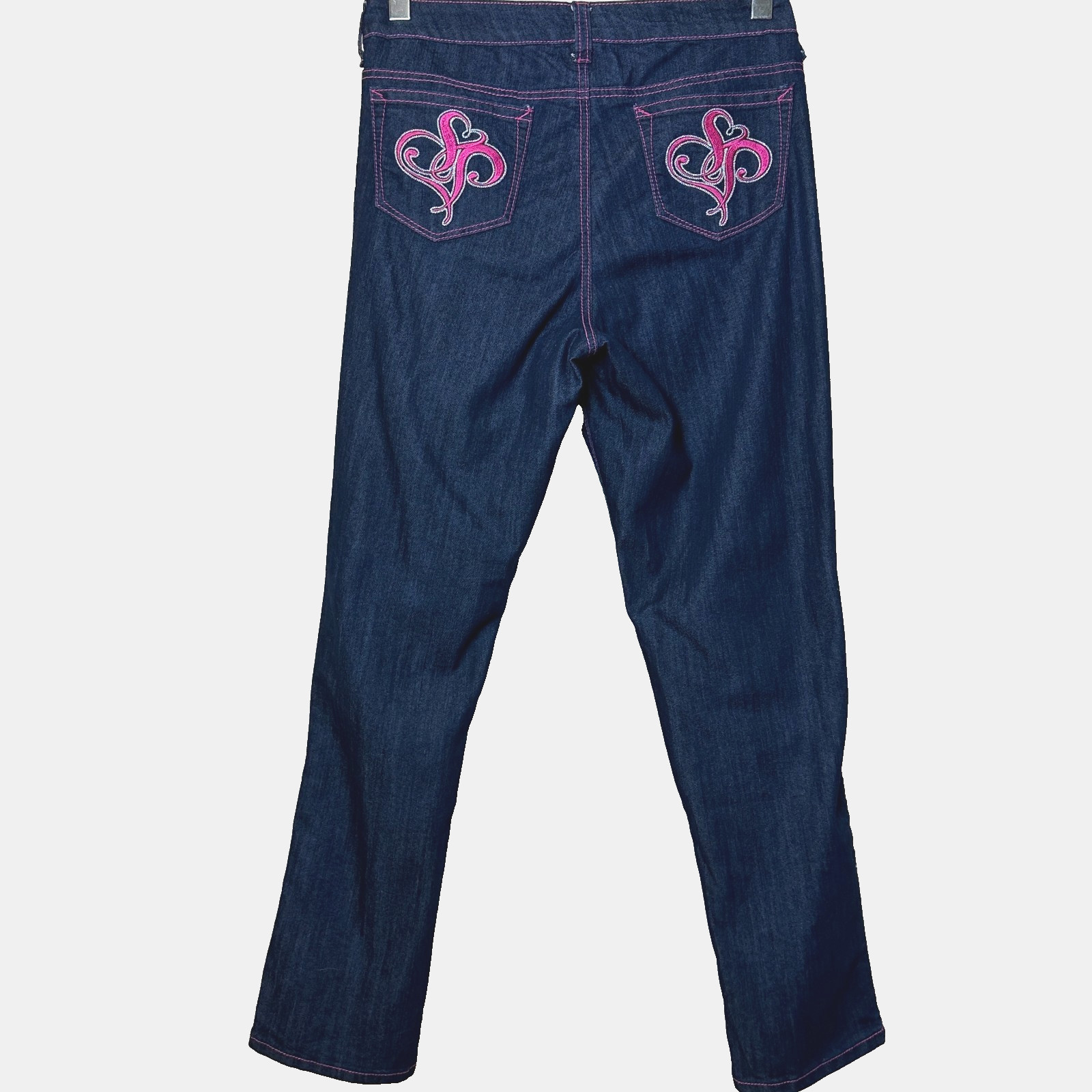 Southpole Pink Stitch Trim Embroidered Pocket Y2K Denim Blue Jeans Women's 18