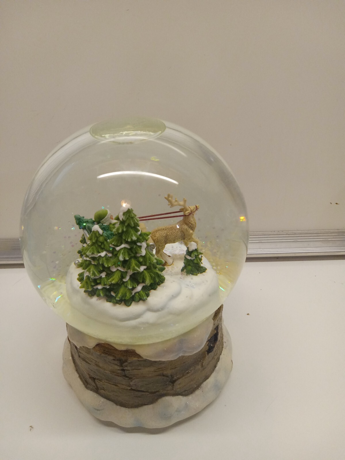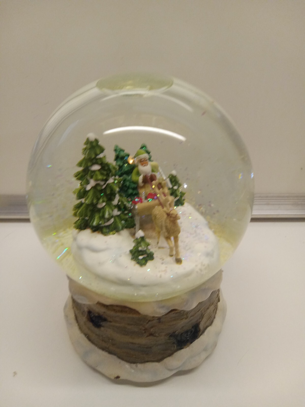 • Hallmark Snow Globe Musical Santa Sleigh Reindeer Large Plays White Christmas