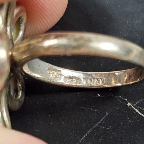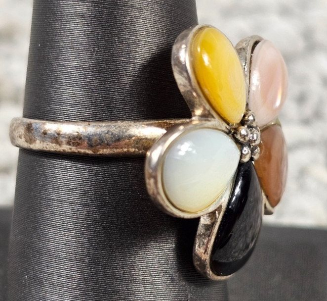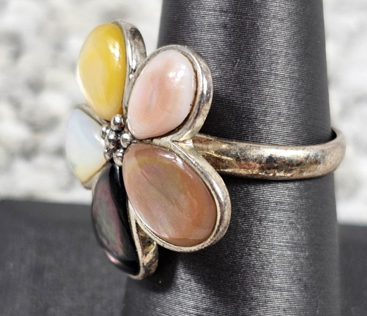 Thailand Sterling Silver MOP Abalone Flower Band Ring 6.8 Grams Size 8