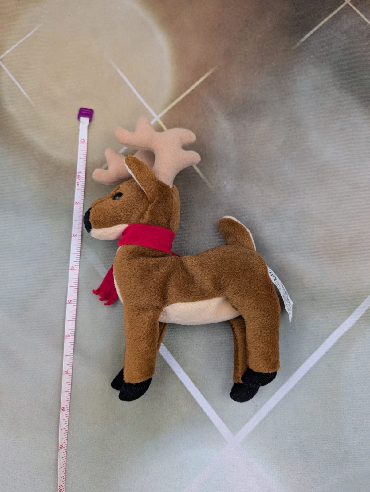 как выглядит The 24K Company Beanie Bobbers 1997 Plush Bean Small Reindeer W/ Red Scarf фото