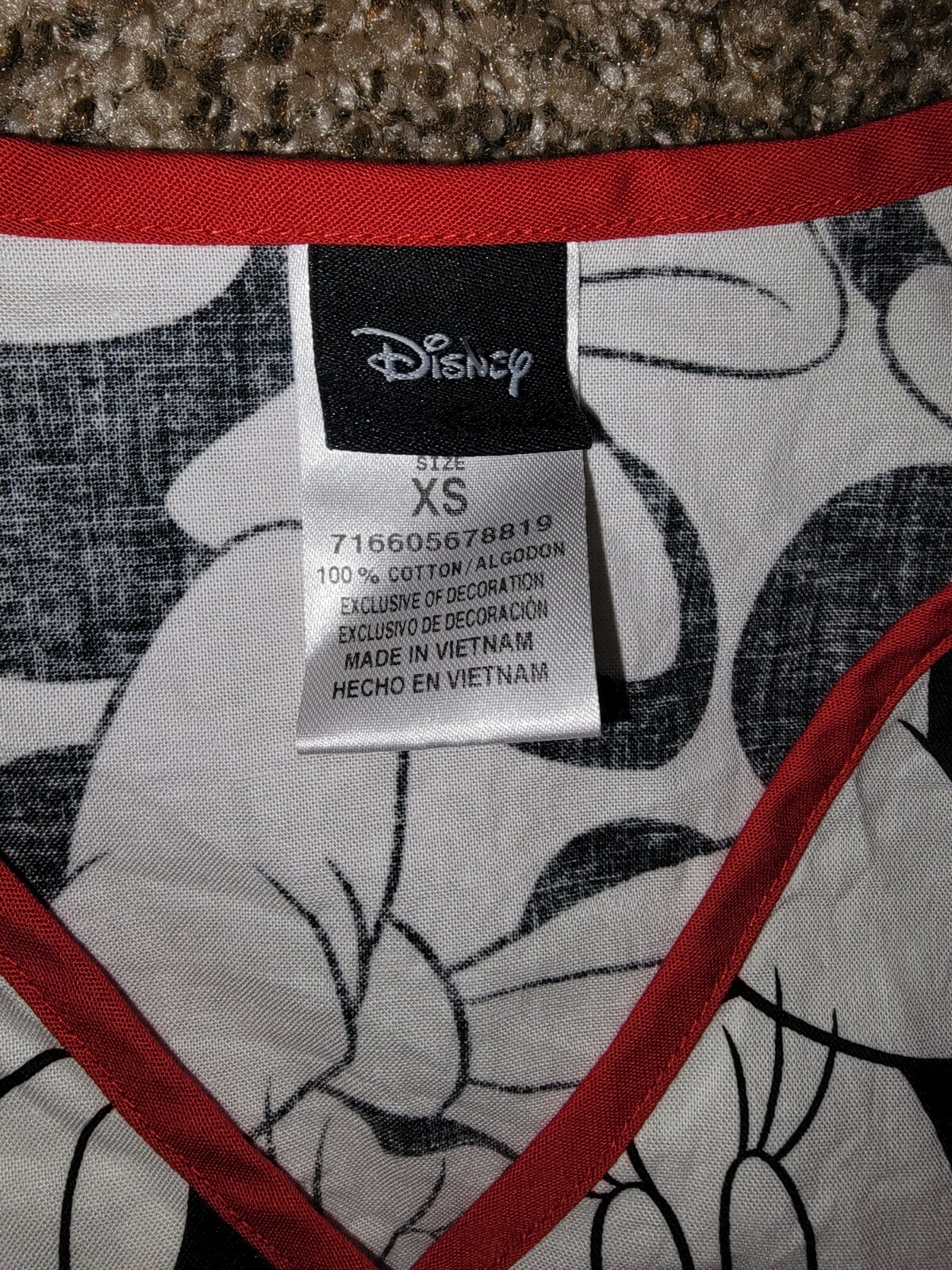 Theme Disney Minnie Mouse Polka dots Womens Medical Scrub Top Xsmall