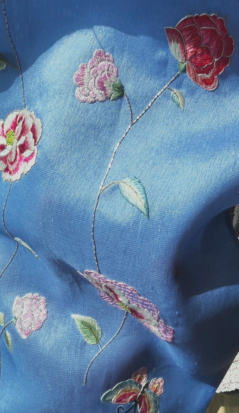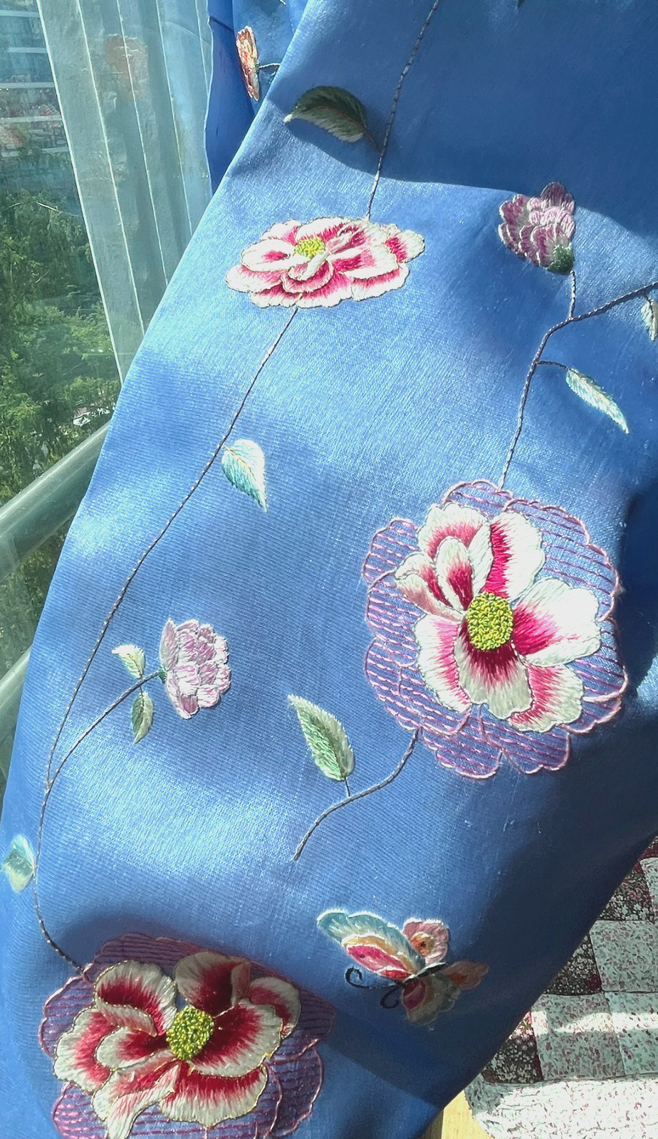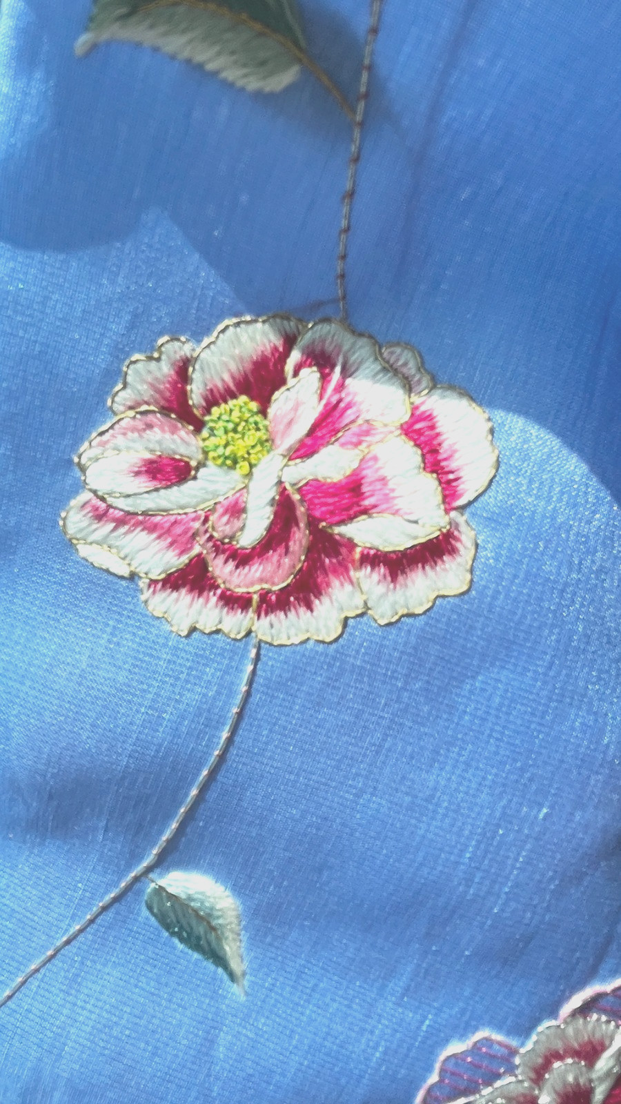 как выглядит L Traditional Korean Hanbok Dress Silk Top-Sky blue Top, Peony Hand-Embroidery фото
