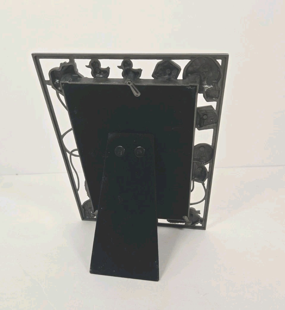 Vintage Pewter Baby Photo Frame Blocks Lamb Giraffe Design 4x6 Photo