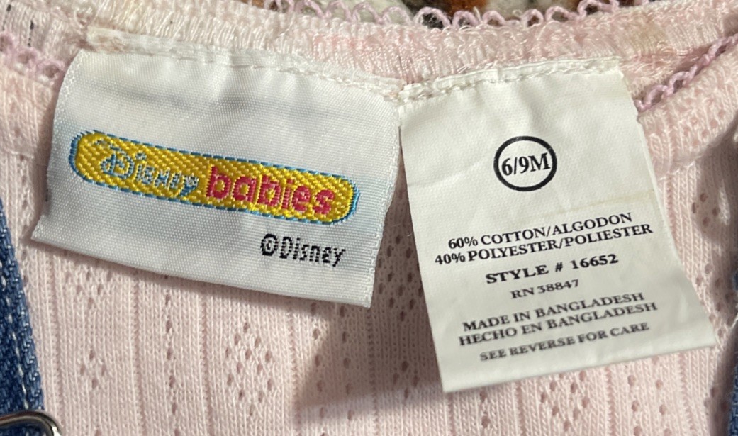 NWT VTG Disney Babies Minnie Mouse Denim Bib Overalls Baby Girl 6-9 Months