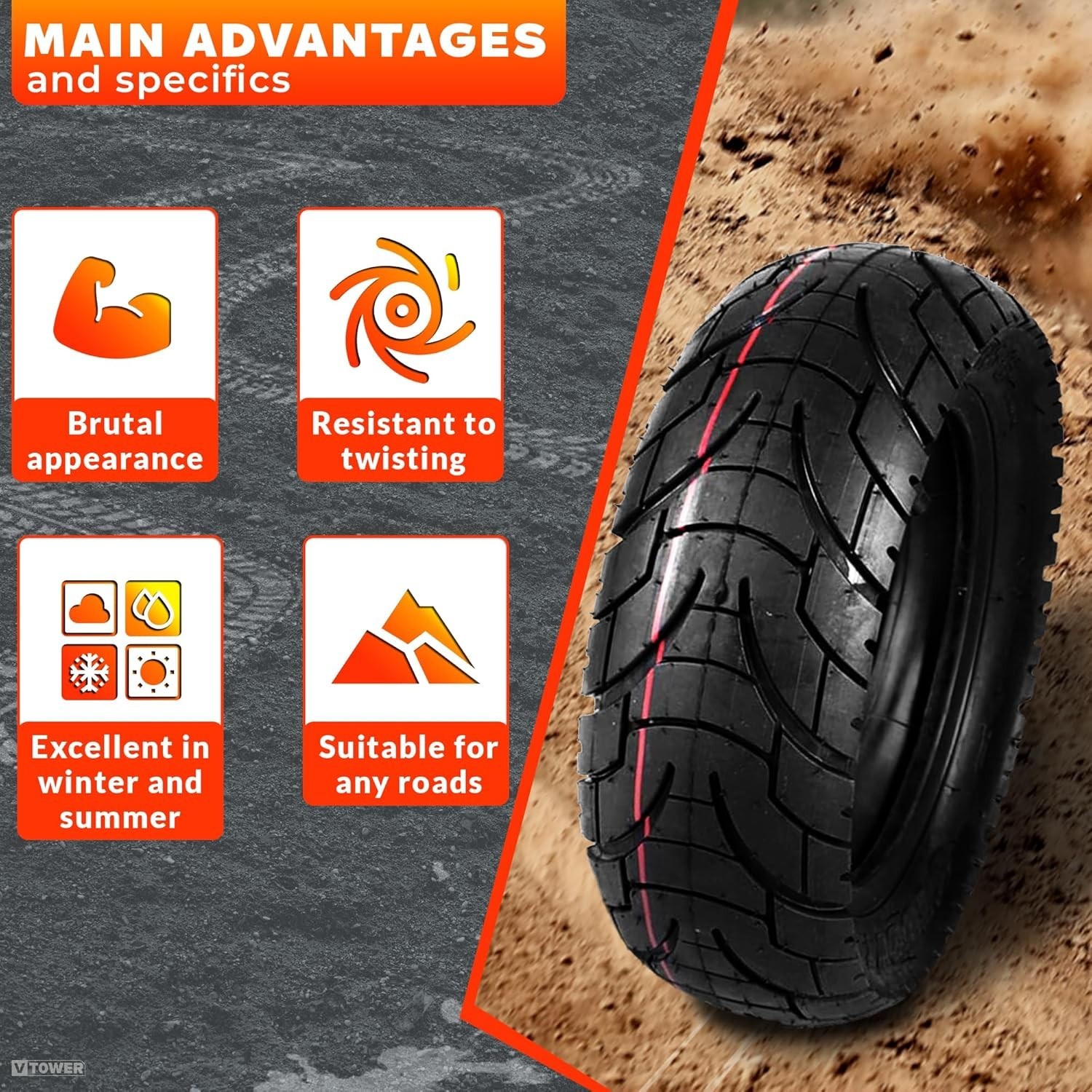 10x3 Puncture-Resistant Electric Scooter Tire with Rugged Tread for All Seasons
