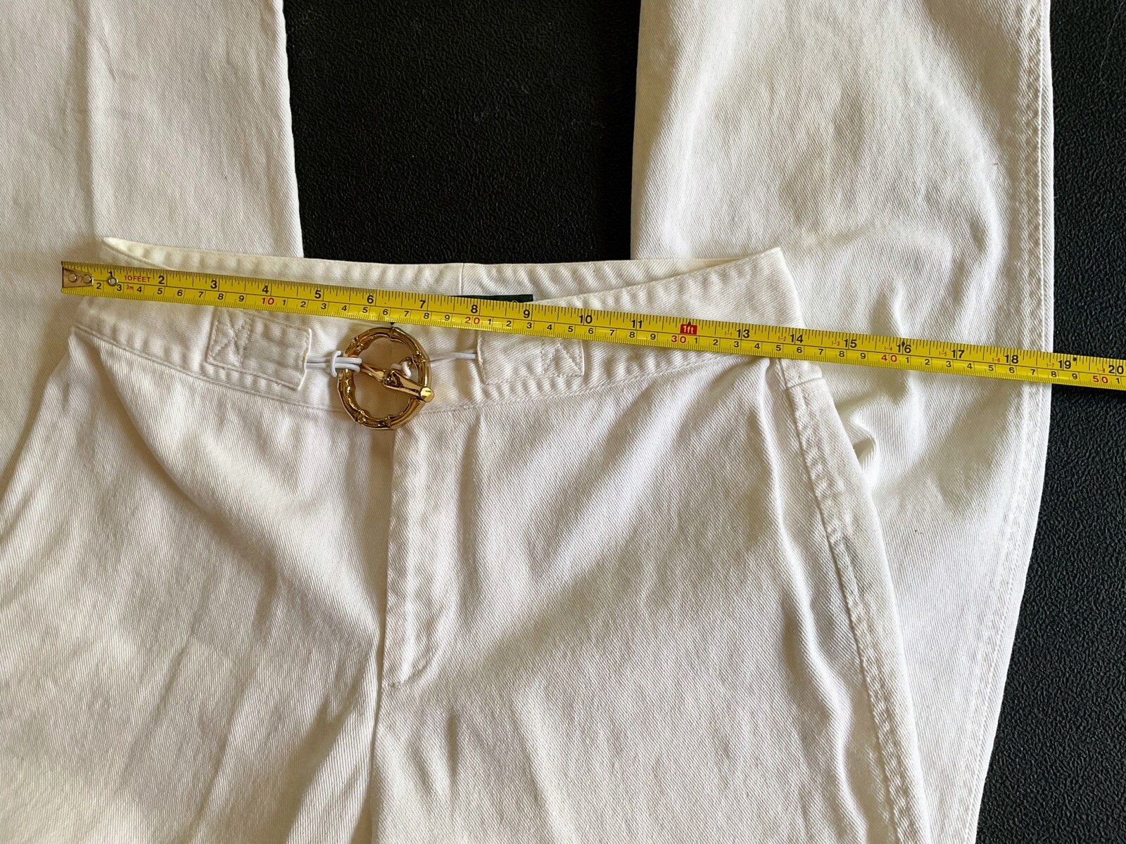 как выглядит Lauren Jean Co. Ralph Polo Women White Pant Gold Belt SZ 4 Y2K Wide Leg Vtg.90s фото
