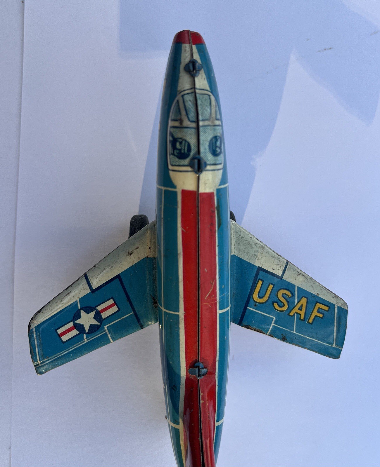 как выглядит Haji Vintage 1950s Tin Lithograph Toy Airplane F-104 USAF Jet фото