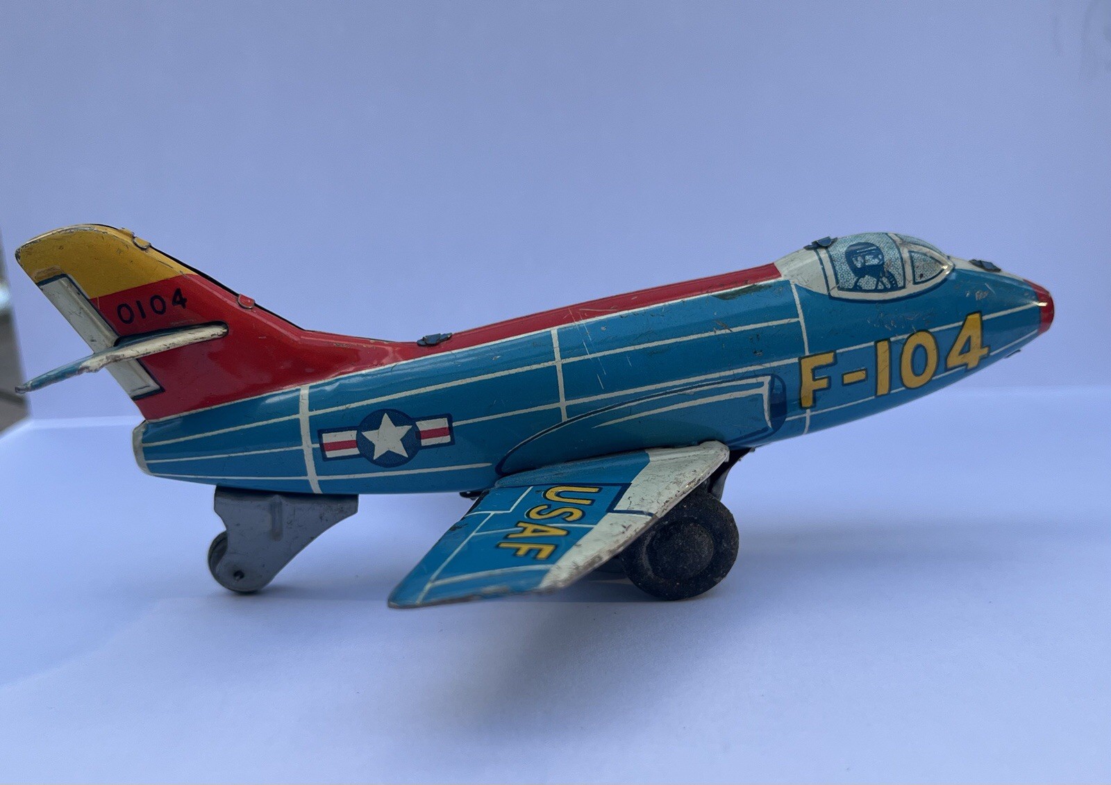 Haji Vintage 1950s Tin Lithograph Toy Airplane F-104 USAF Jet