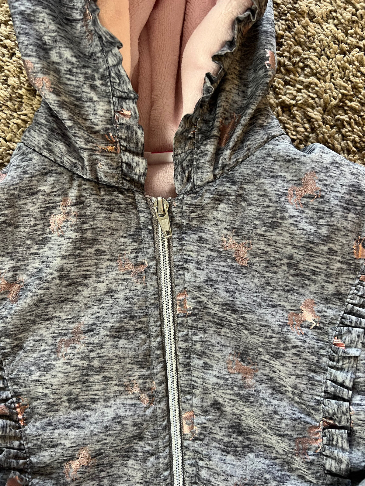 как выглядит Penelope Mack Gray Unicorn Jacket Coat Hooded Girls Size 5 Fleece Liner фото