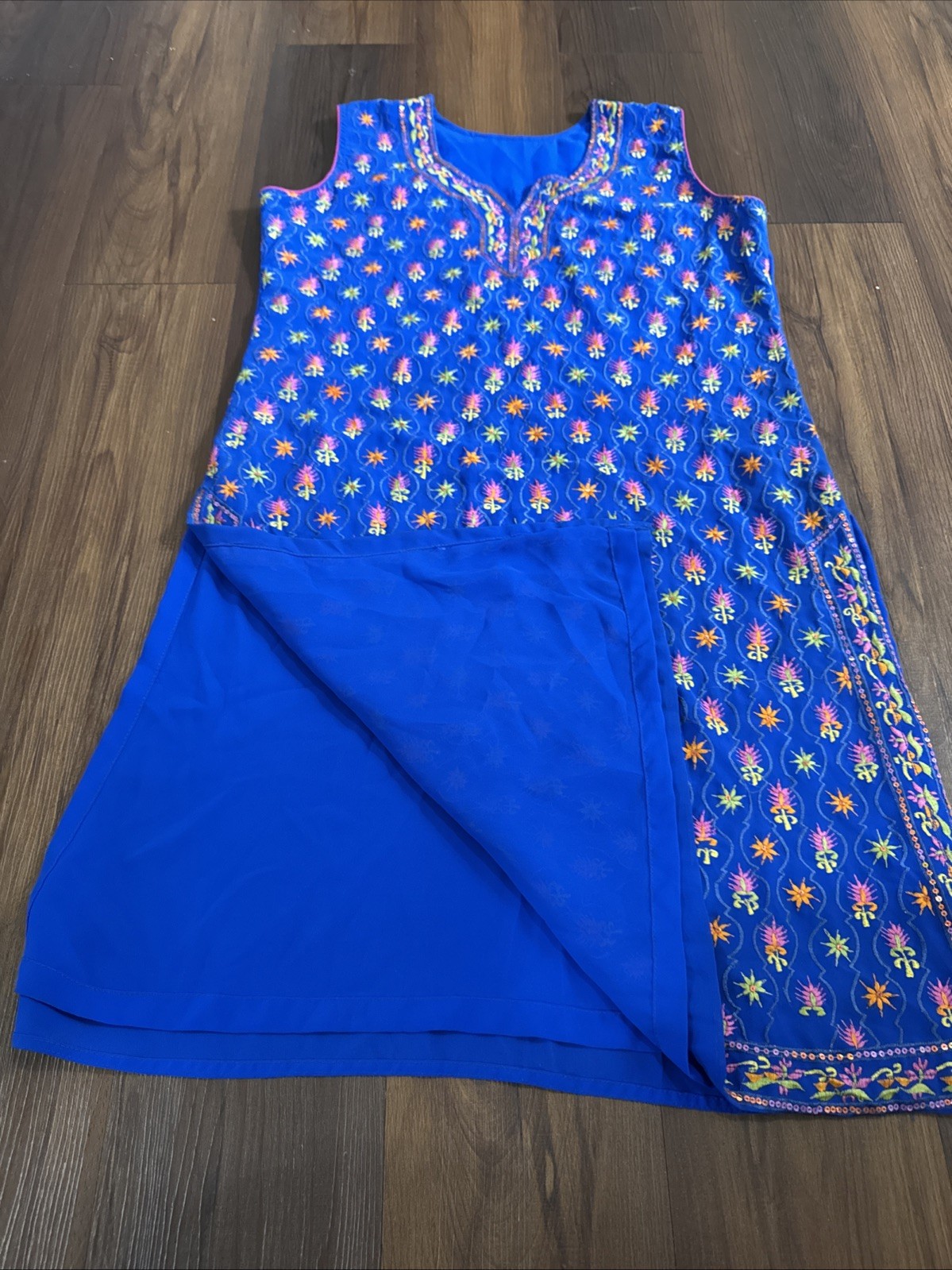 как выглядит INDIAN TOP KURTI KURTA PAKISTANI DRESS SLEEVELESS TUNIC ROYAL BLUE фото