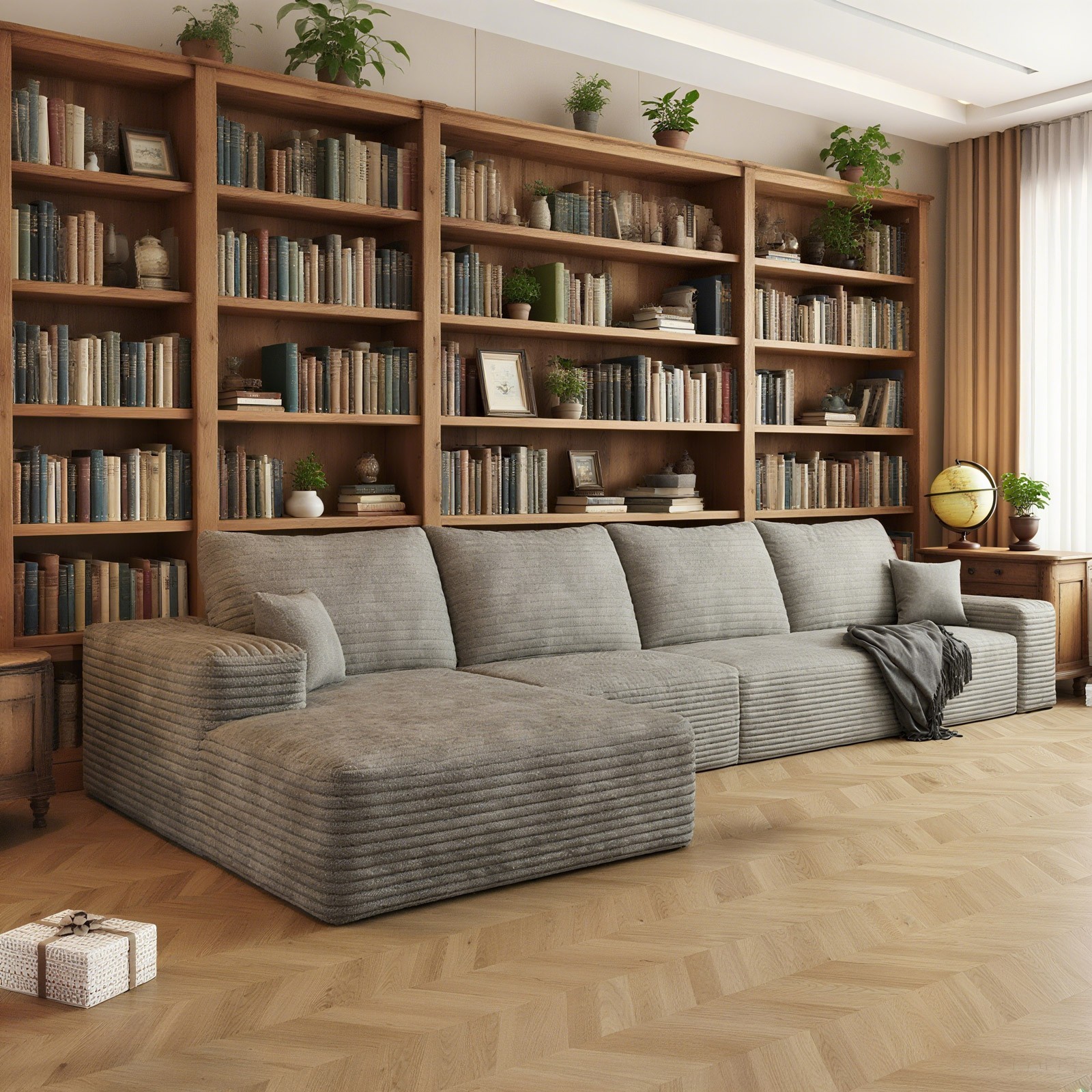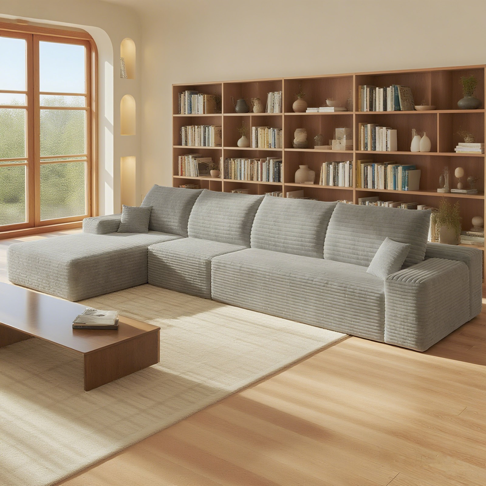 135Grey Cloud Sofa L Shaped Sectional Couch Corduroy Boneless with Left Chaise