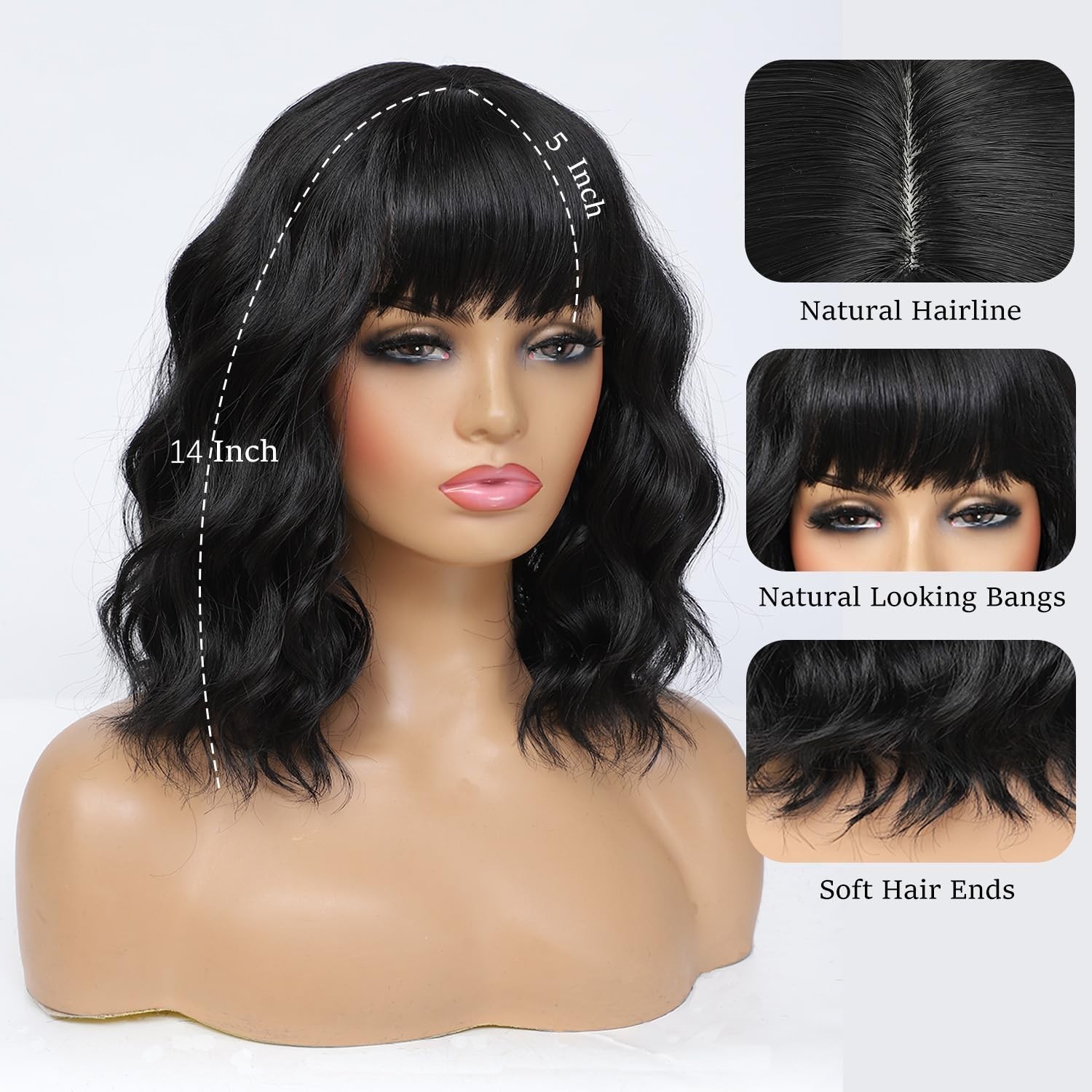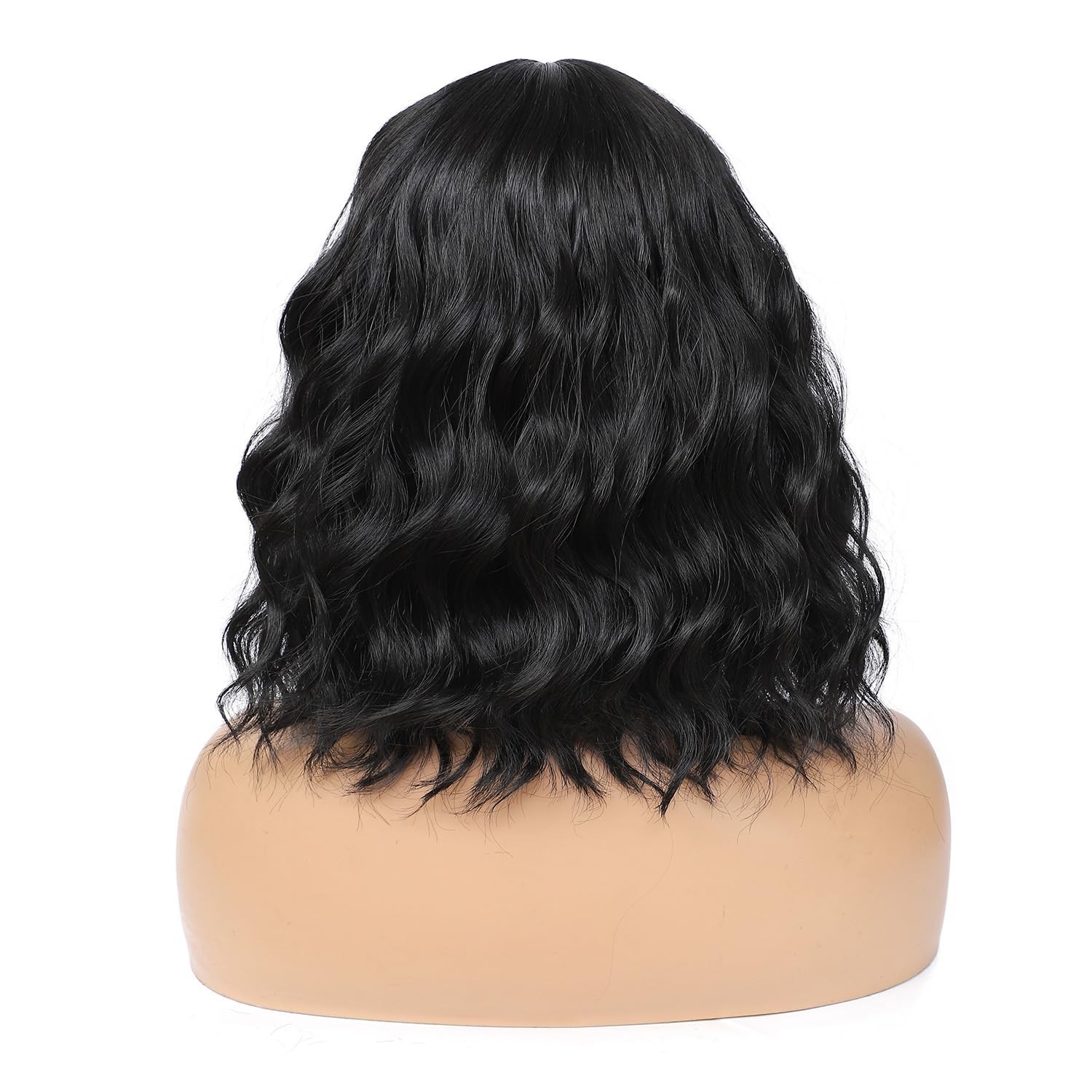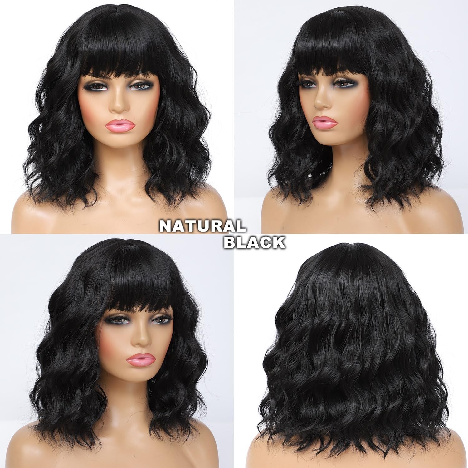 Short Black Bob Wig with Bangs for Women Natural Looking Loose Wavy... Fast Ship