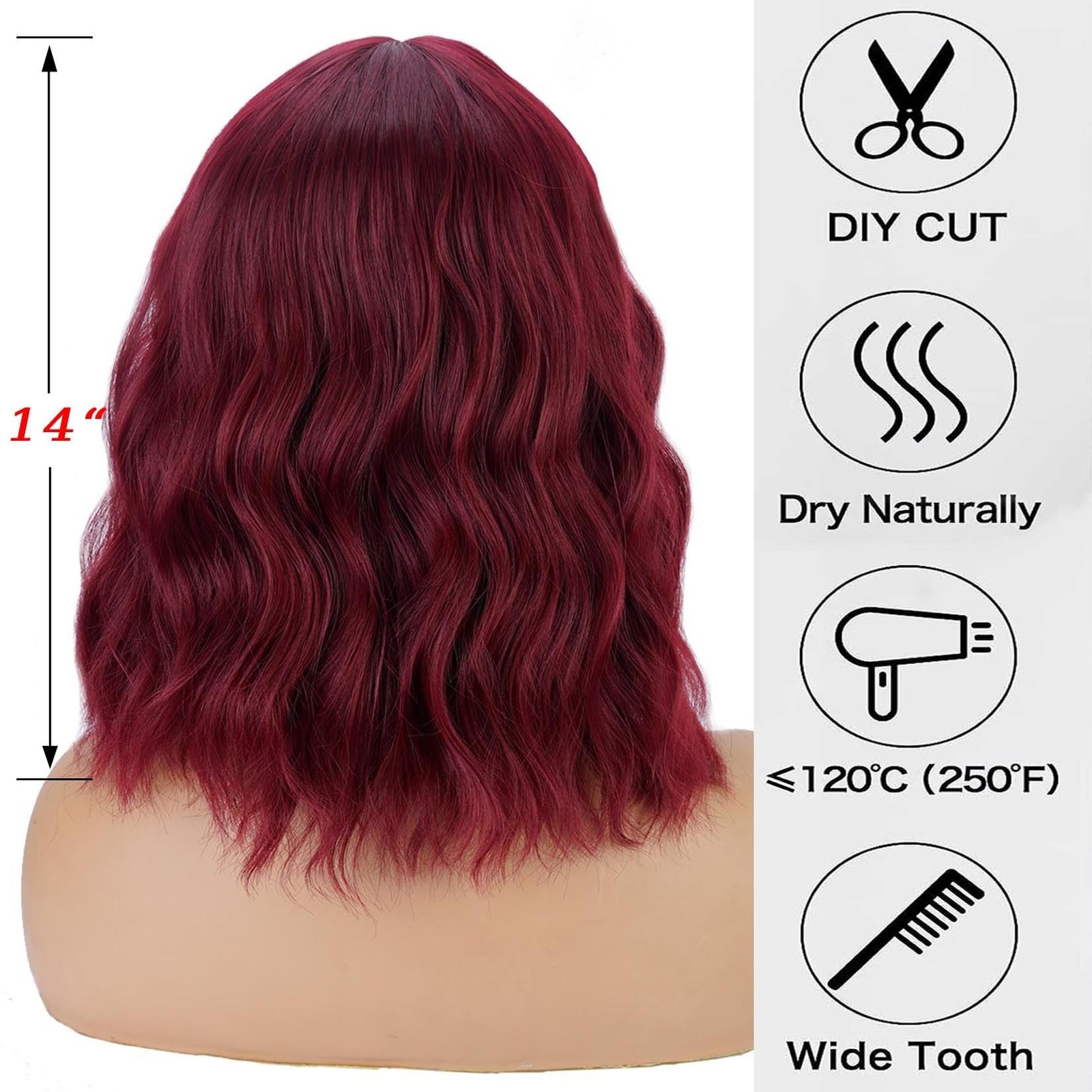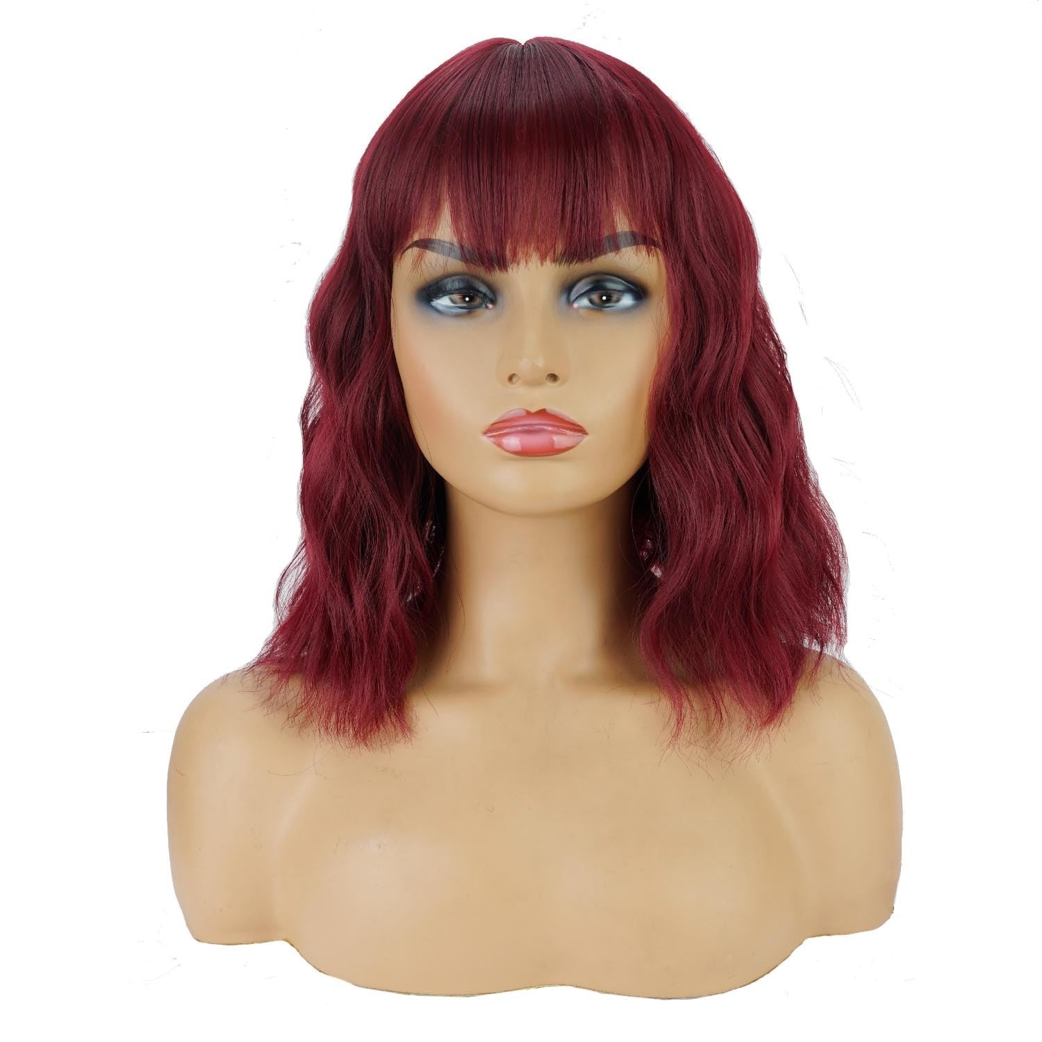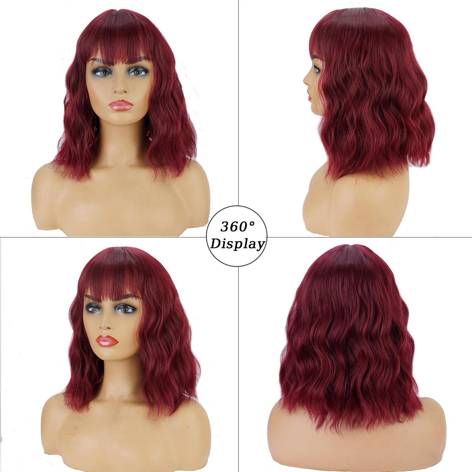 Wine Red Wigs for Black Women Soft Short Bob Style Wigs with Bangs ... Fast Ship