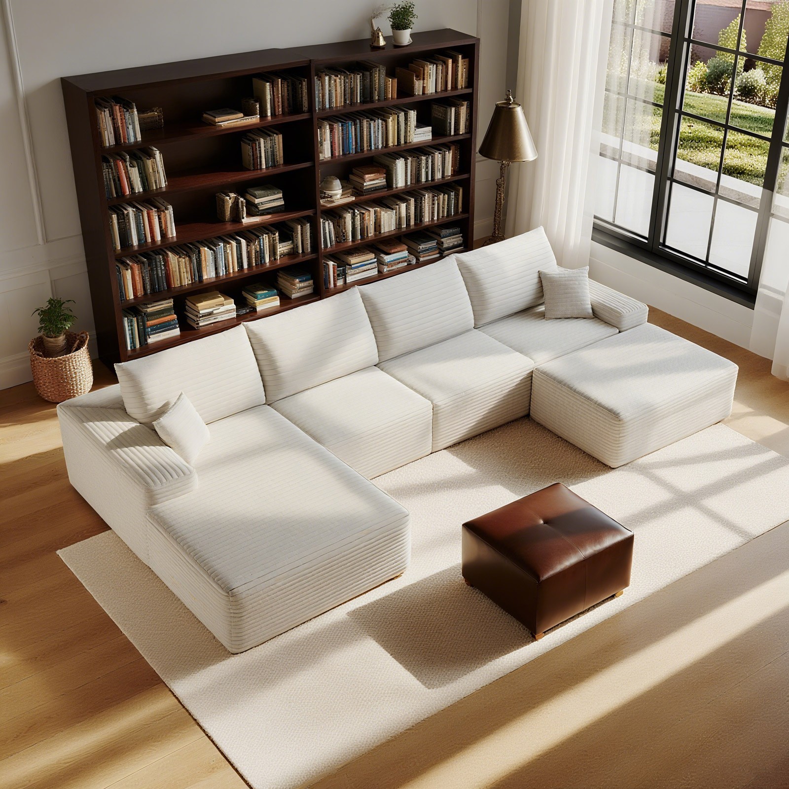 135Boneless Couch Sectional Cloud Sofa Corduroy Left Facing Chaise with Ottoman
