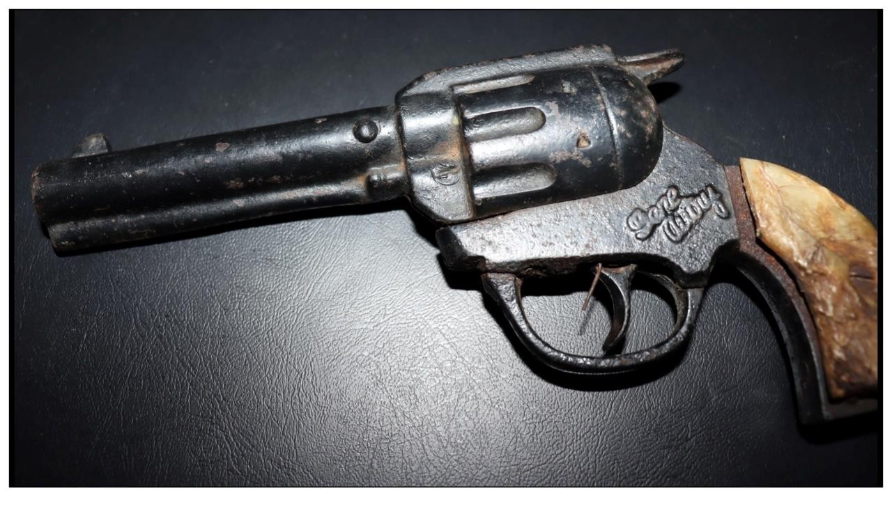 как выглядит VINTAGE - 1940-50s ERA - KENTON - GENE AUTRY TOY CAP WITH GRIPS - METAL TOY фото