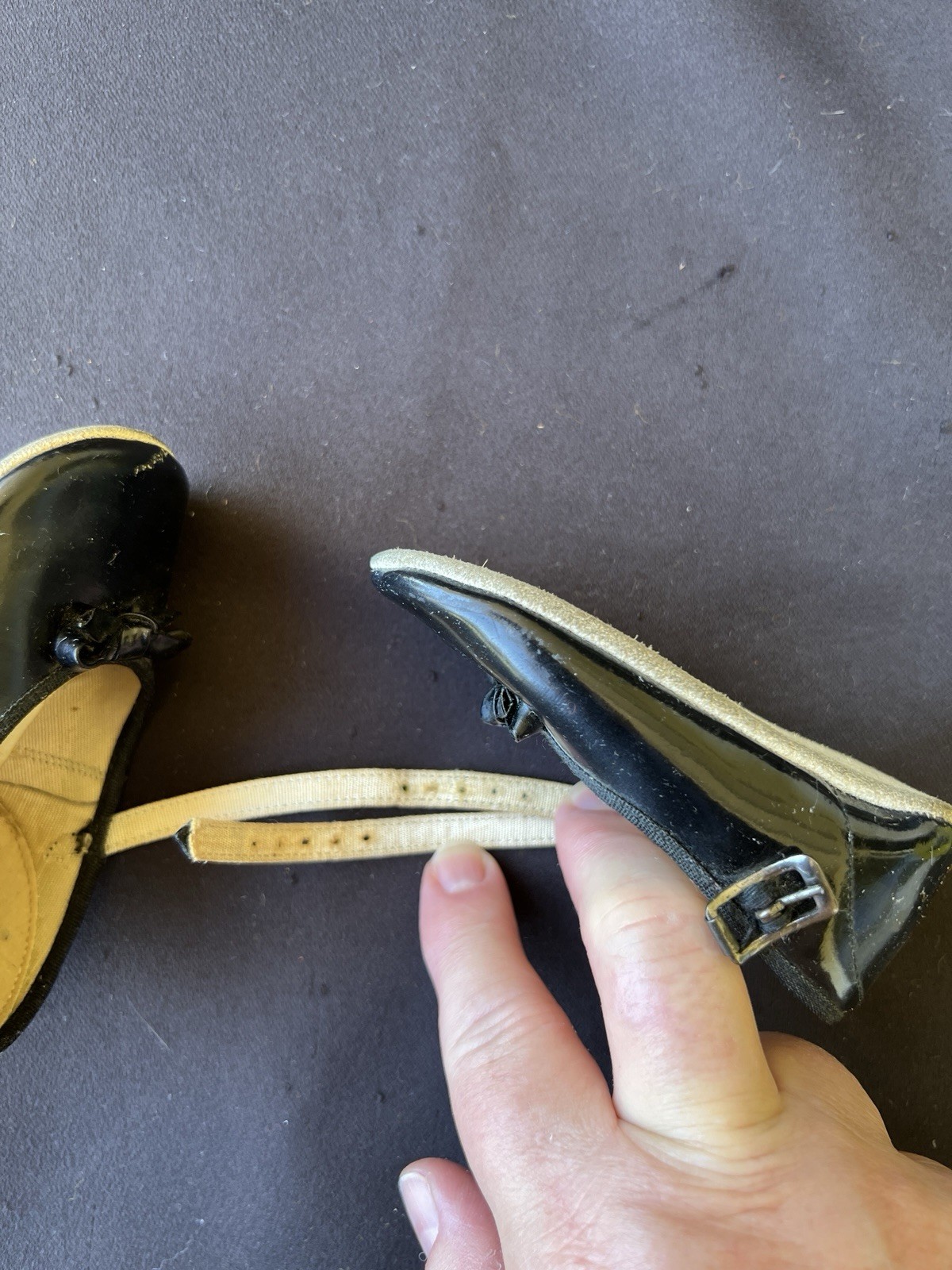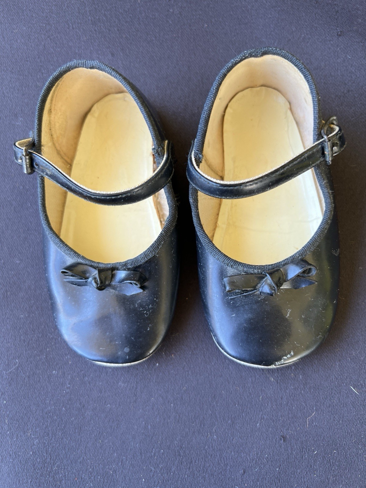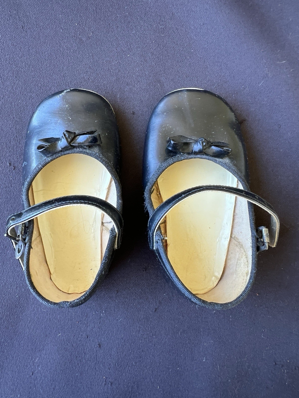 Vtg 1930s Black Patent Leather Mary Jane Shoes Buckle Unbranded Infant Sz 2 or 3