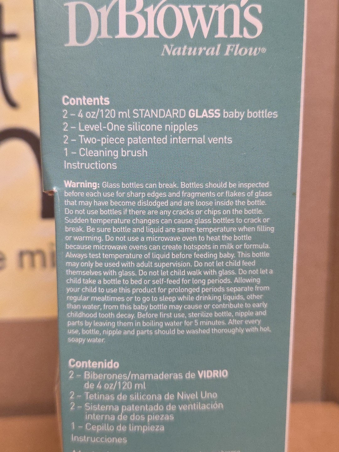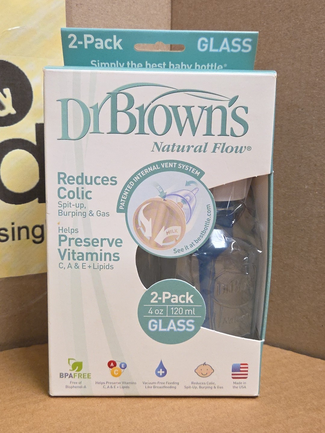 Dr. Brown's Natural Flow Anti-Colic 4 Ounce 4 oz 2 Pack Glass Bottles