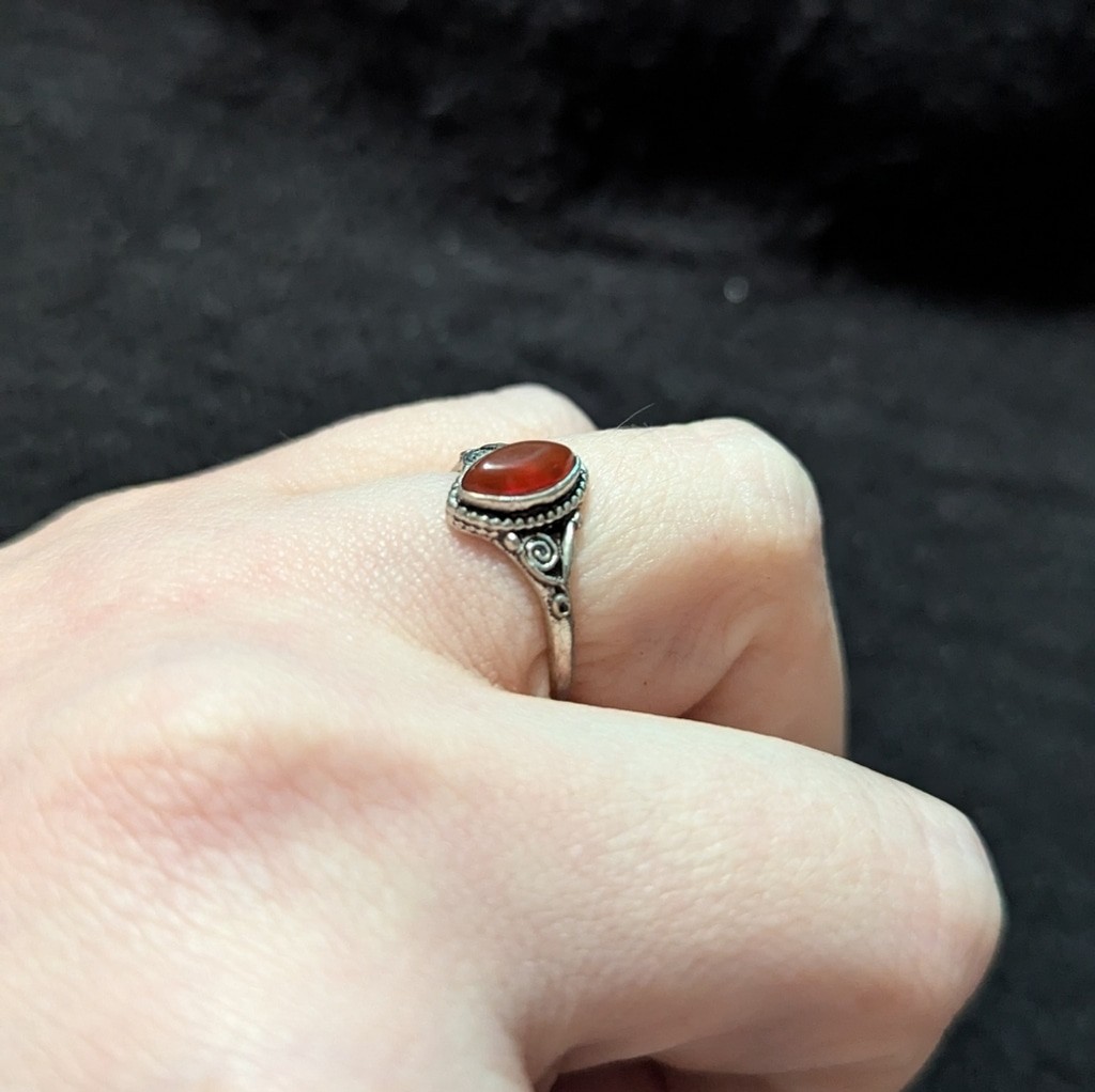 как выглядит Silver Plated Orange Carnelian Gemstone Dainty Delicate Statement Ring - Sz 6.5 фото