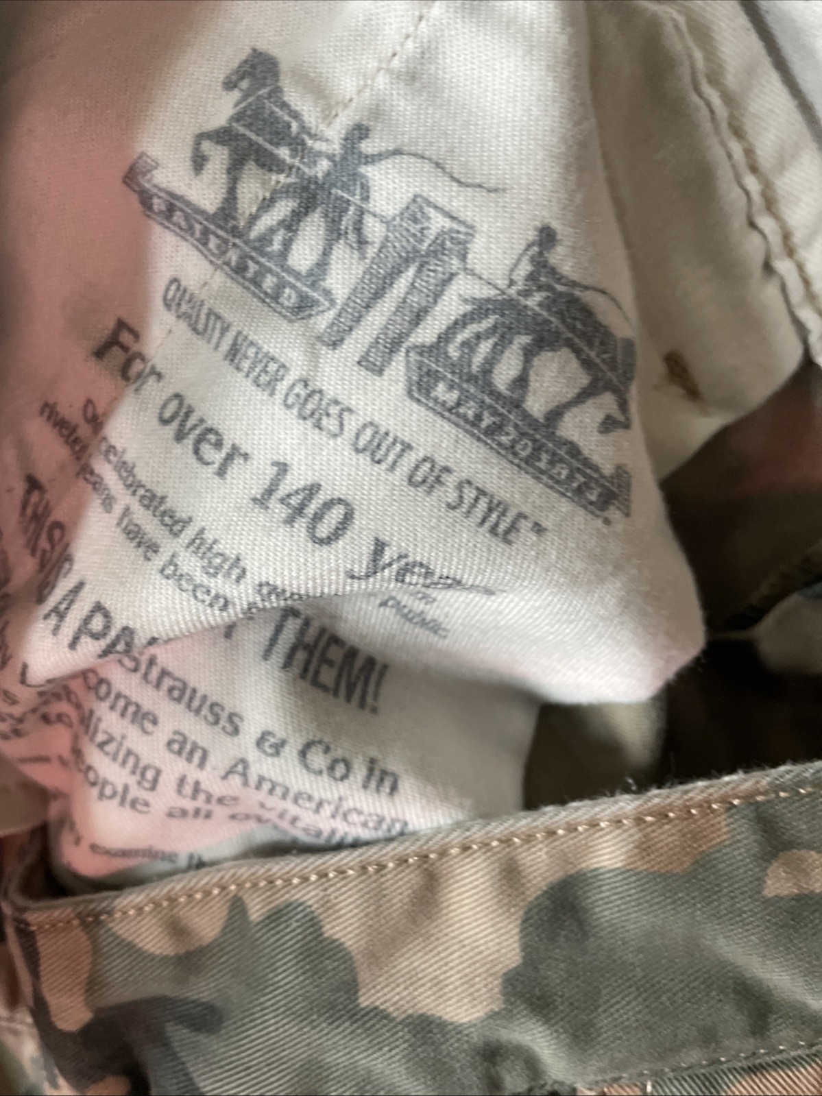 Levi's Ace Cargo Pants Men's 36x31 Camo Cotton Twill Unfinished Hem