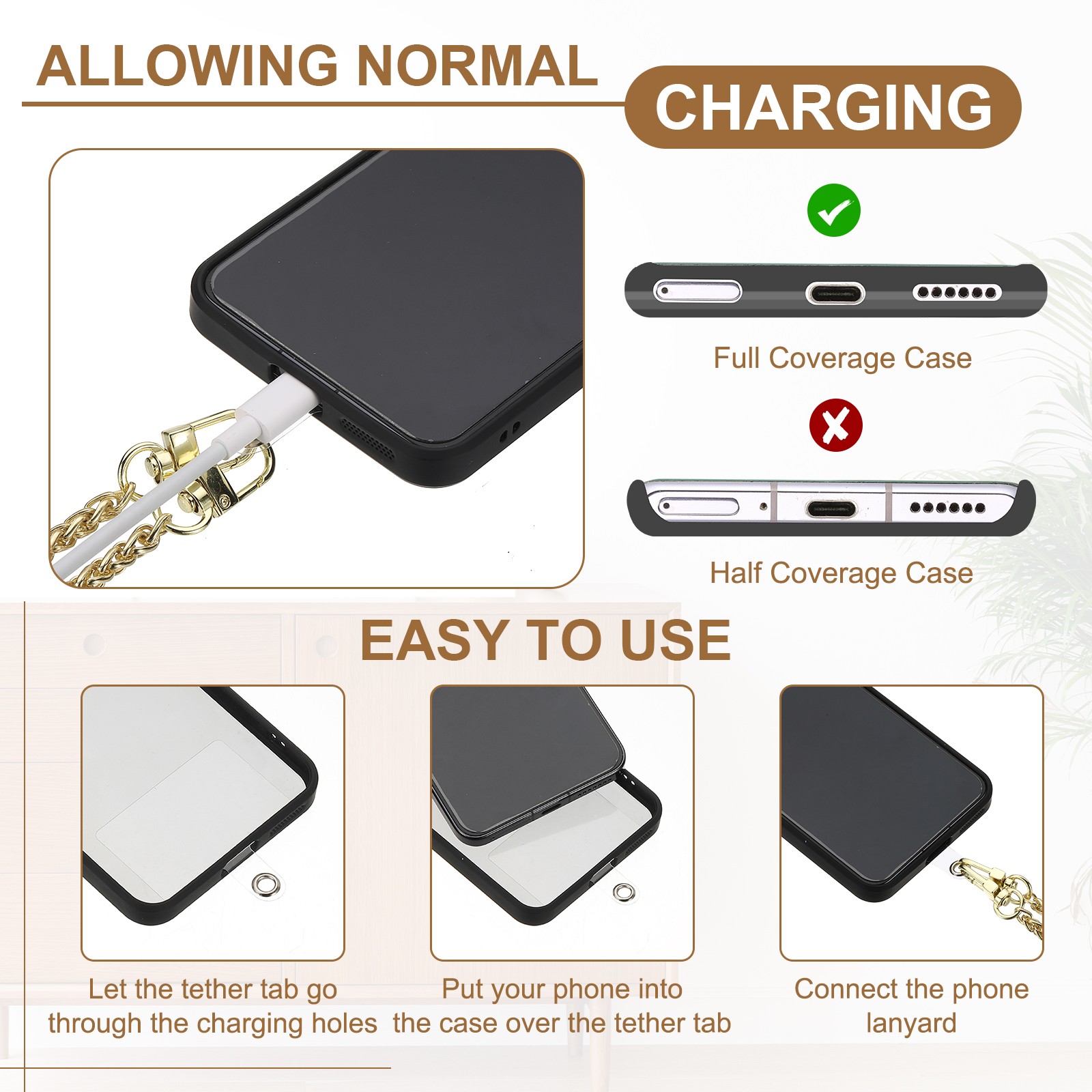 Phone Lanyard, 47 Adjustable Crossbody Phone Chain with Tether Tab, Light Gold